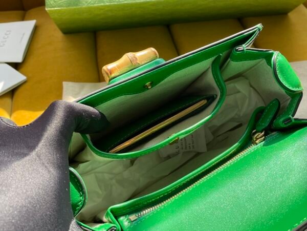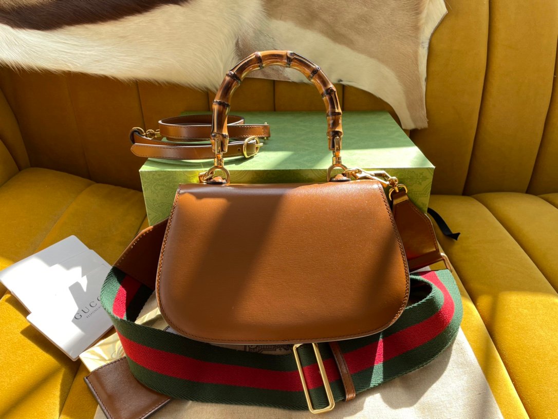 Exquisite Craftsmanship & Iconic Details Crafted from premium “original factory” leather, the bag offers a remarkably smooth and luxurious finish that perfectly complements its structured, elegant silhouette. The true focal point is the House’s historic curved bamboo top handle, which is meticulously shaped and polished, seamlessly paired with a matching bamboo twist-lock closure on the front flap.