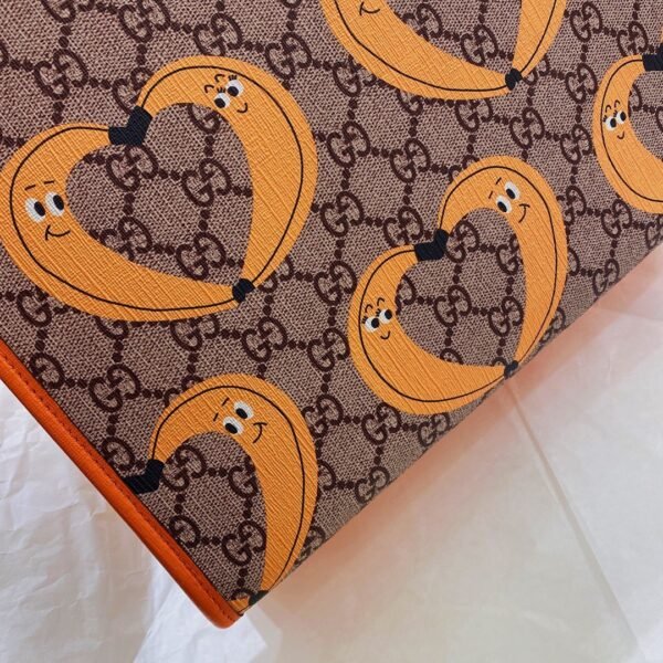 The Banana Heart Print (Orange Trim): A standout piece featuring a special collaboration with artist Nina Dzyvulska. This design is covered in playful, animated banana characters curving into adorable heart shapes, beautifully framed by a bright, energetic orange trim and handles.
