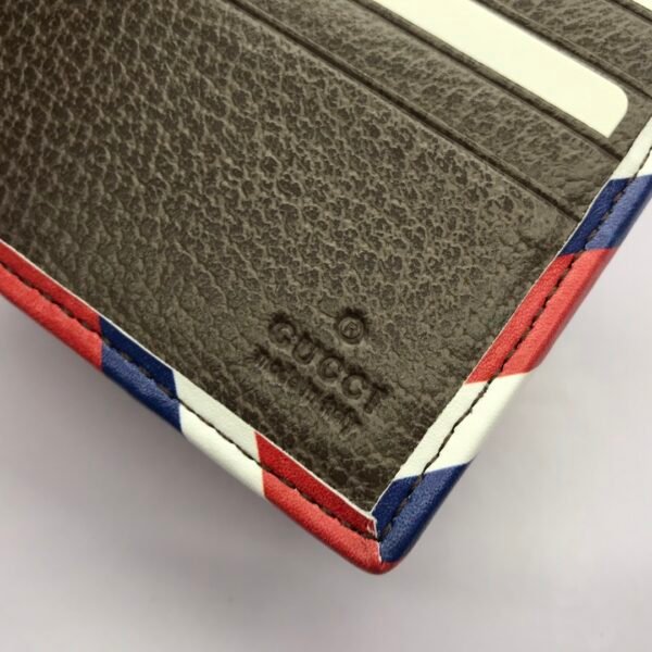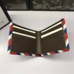Iconic Materials & Vintage Travel Details Crafted to top-tier boutique standards, the wallet utilizes the highly recognizable beige/apricot GG Supreme canvas (premium PVC) as its highly durable foundation. Paying direct homage to classic aviation and postal travel, the edges are boldly framed by a retro red, white, and blue airmail-striped trim.