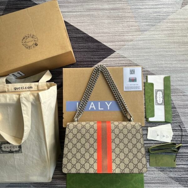 Signature Details & Packaging True to the Dionysus lineage, the bag is secured by the signature antiqued metal tiger head spur closure and features a versatile sliding chain strap for multiple wear options. Whether you choose the compact Super Mini or the practical Small size, your purchase arrives complete with the full set of Gucci’s signature boutique green packaging, perfect for gifting or elevating your own collection.