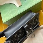 Materials: Crafted from premium black and ivory GG denim jacquard fabric with smooth leather trim.