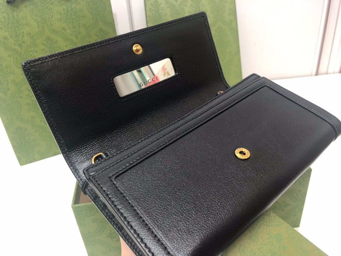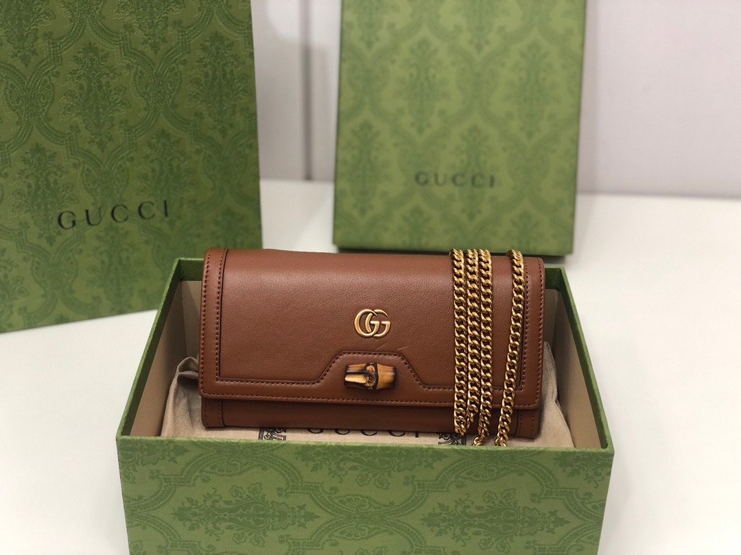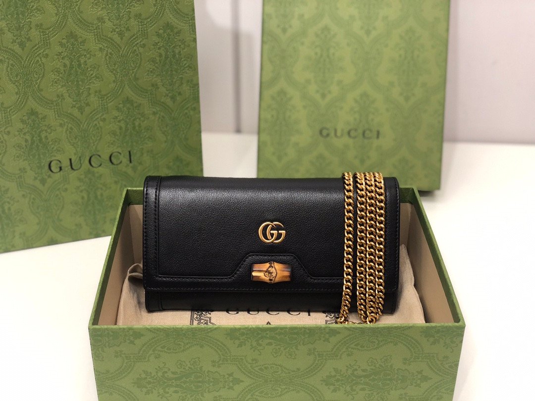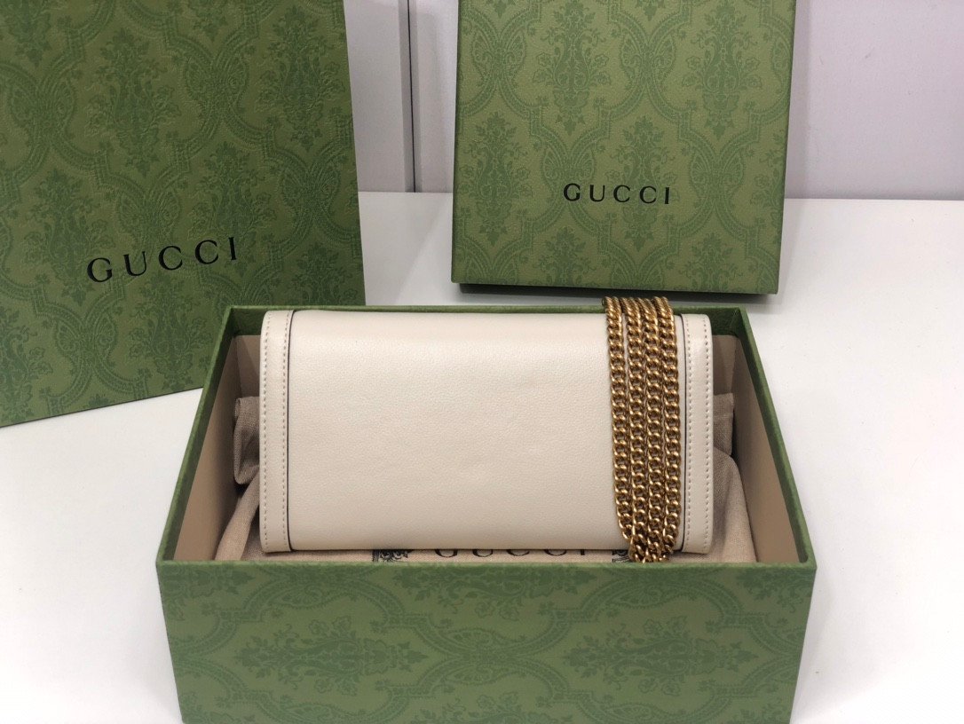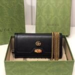 Sophisticated Design & Iconic Hardware Meticulously crafted from premium smooth leather, this chain bag offers a sleek and refined aesthetic. The front flap is adorned with the classic gold-toned Double G monogram hardware, elegantly seated just above a unique and chic bamboo clasp detail. It comes equipped with a sophisticated gold-toned chain strap, allowing you to effortlessly wear it over the shoulder, across the body, or tucked inside to use as a traditional clutch.