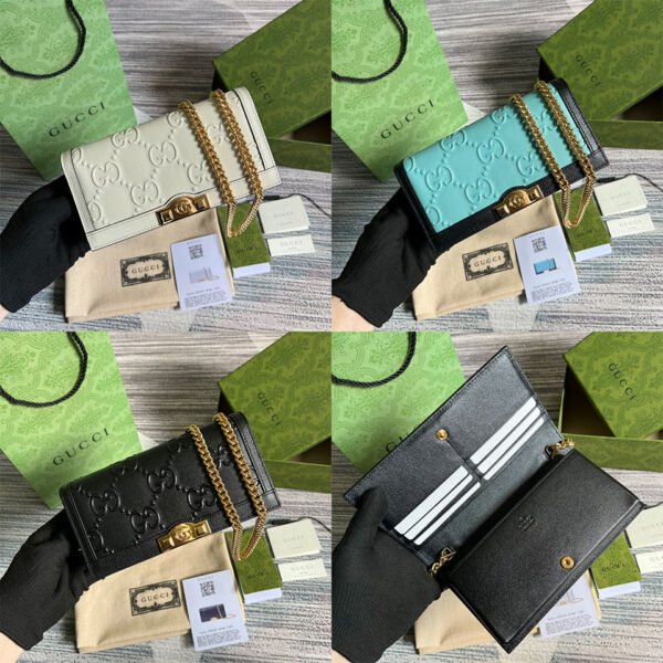 Be the first to review “Gucci GG Embossed Chain Wallet (WOC) 19cm Full Leather with Stud Details”