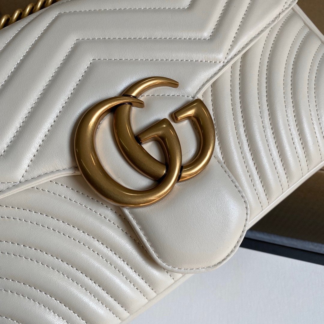 The absolute focal point of the bag is the striking Double G logo and matching chain strap, both crafted using exclusive, custom-made hardware that perfectly mirrors the original.