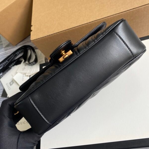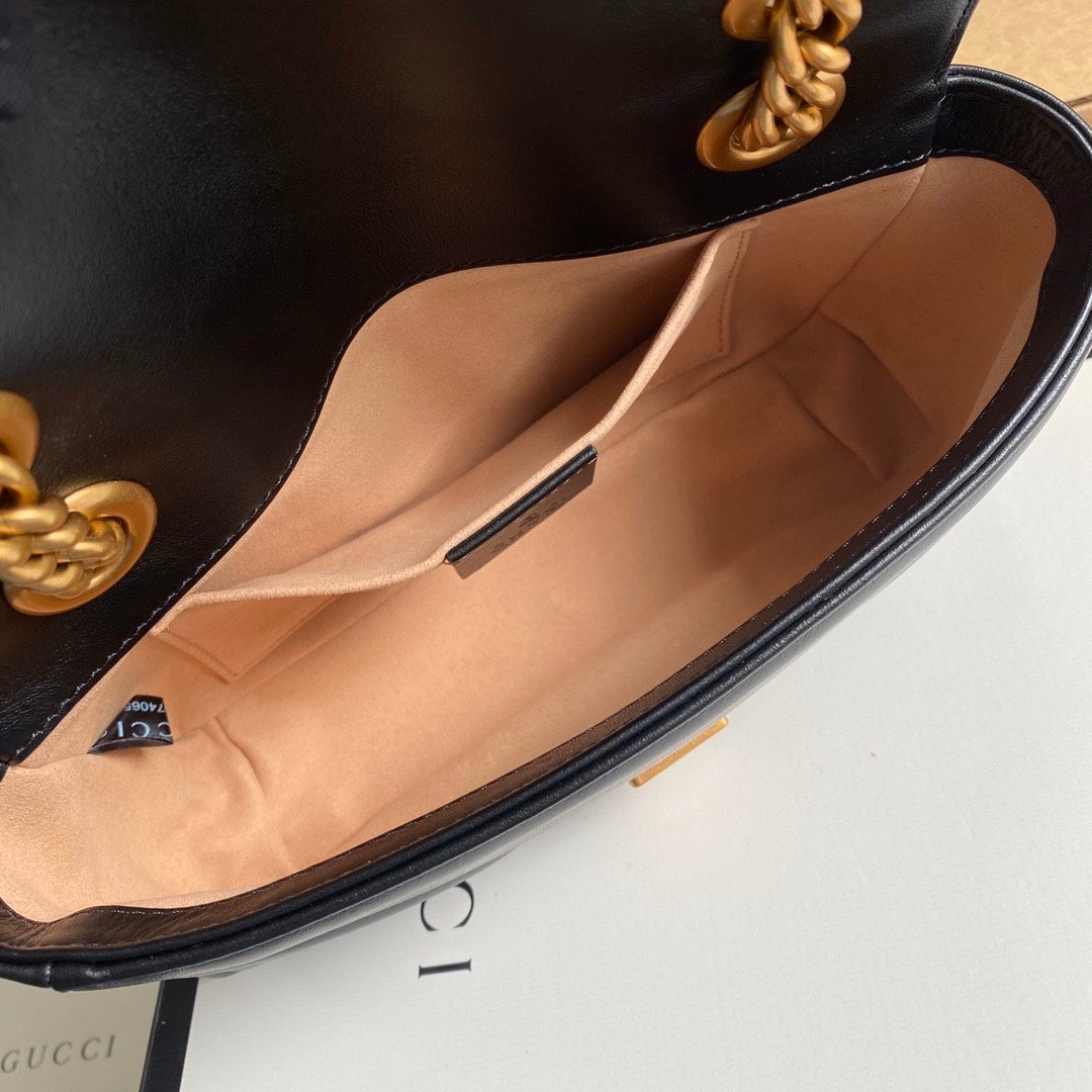 Design Highlight: Signature matelassé chevron leather paired with an oversized flap and Double G hardware.