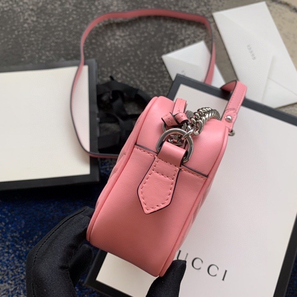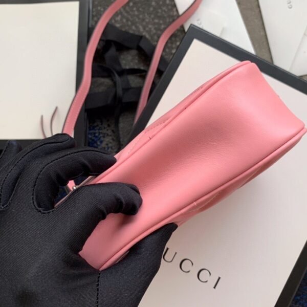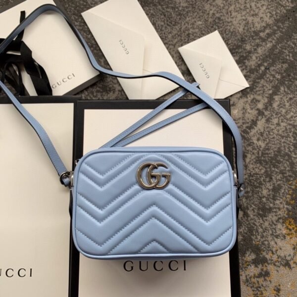 Meticulously constructed using premium “original factory” Italian leather, this mini bag offers a luxurious and supple tactile experience. The exterior showcases the line’s signature chevron (matelassé) quilted stitching, anchored beautifully by the iconic interlocking Double G hardware prominently displayed on the front.