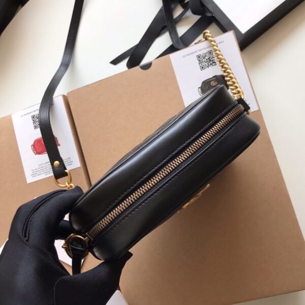 Meticulously constructed using premium “original factory” Italian leather, this mini bag offers a luxurious and supple tactile experience. The exterior showcases the line’s signature chevron (matelassé) quilted stitching, anchored beautifully by the iconic interlocking Double G hardware prominently displayed on the front.