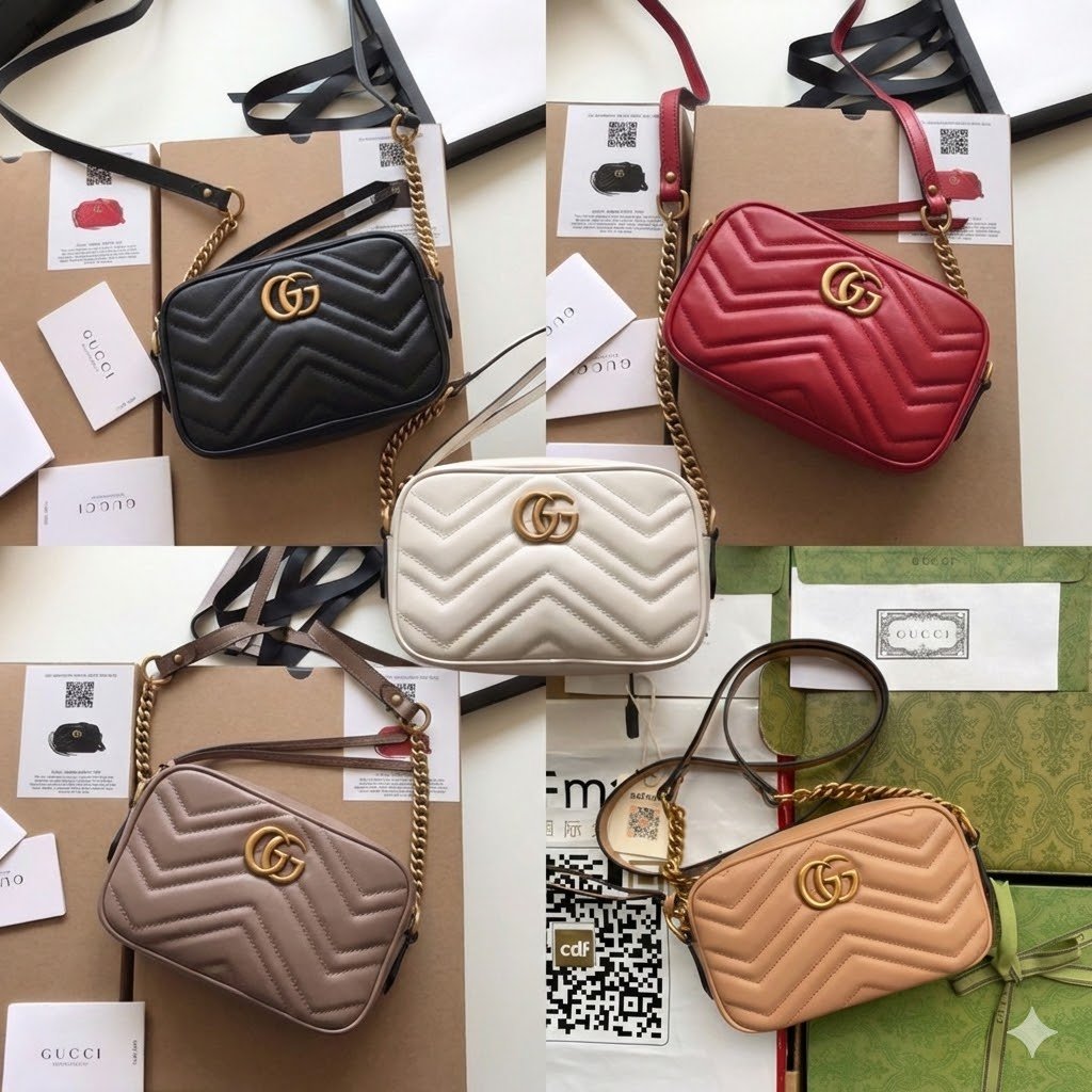 | Hardware | Double G Emblem & Chain Strap (Gold or Silver-toned depending on the colorway) |