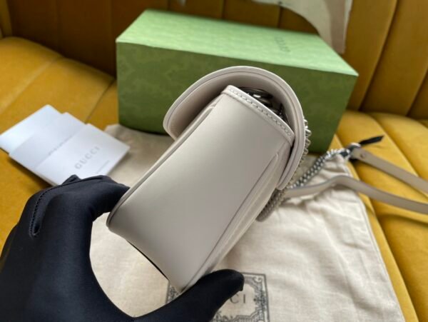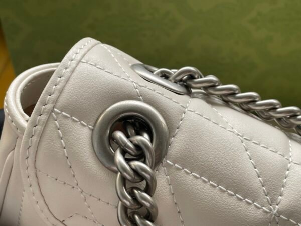 Hardware: Iconic Double G emblem and chain strap.