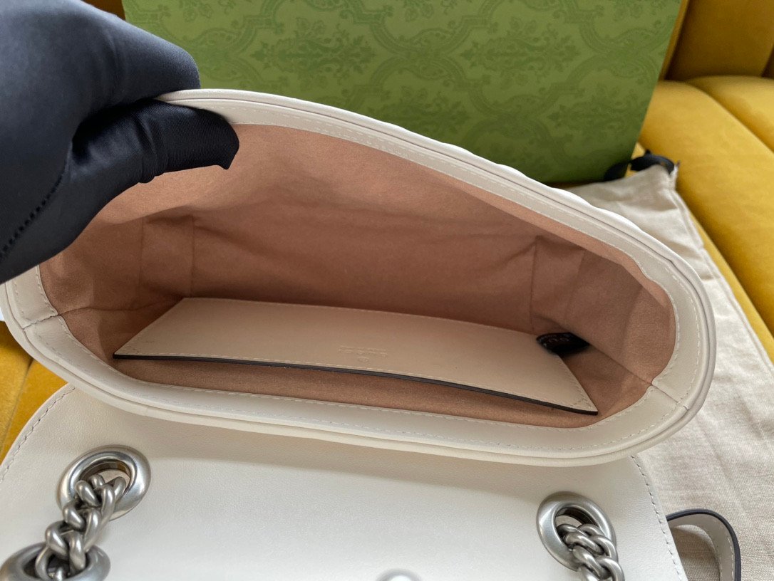 Anchoring the front flap is the classic Double G emblem, rendered here in a refined silver-toned finish that perfectly complements the leather. Designed for effortless day-to-night transitions, the bag is equipped with a matching chain strap. To perfectly match your individual style, this model is available in three gorgeous colorways, all delivered complete with original factory packaging:
