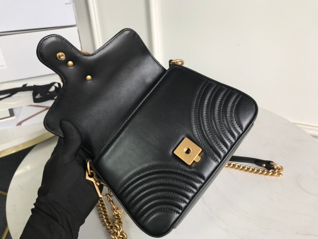 Design Highlight: Features classic chevron matelassé quilting and the iconic antiqued gold-toned Double G emblem.