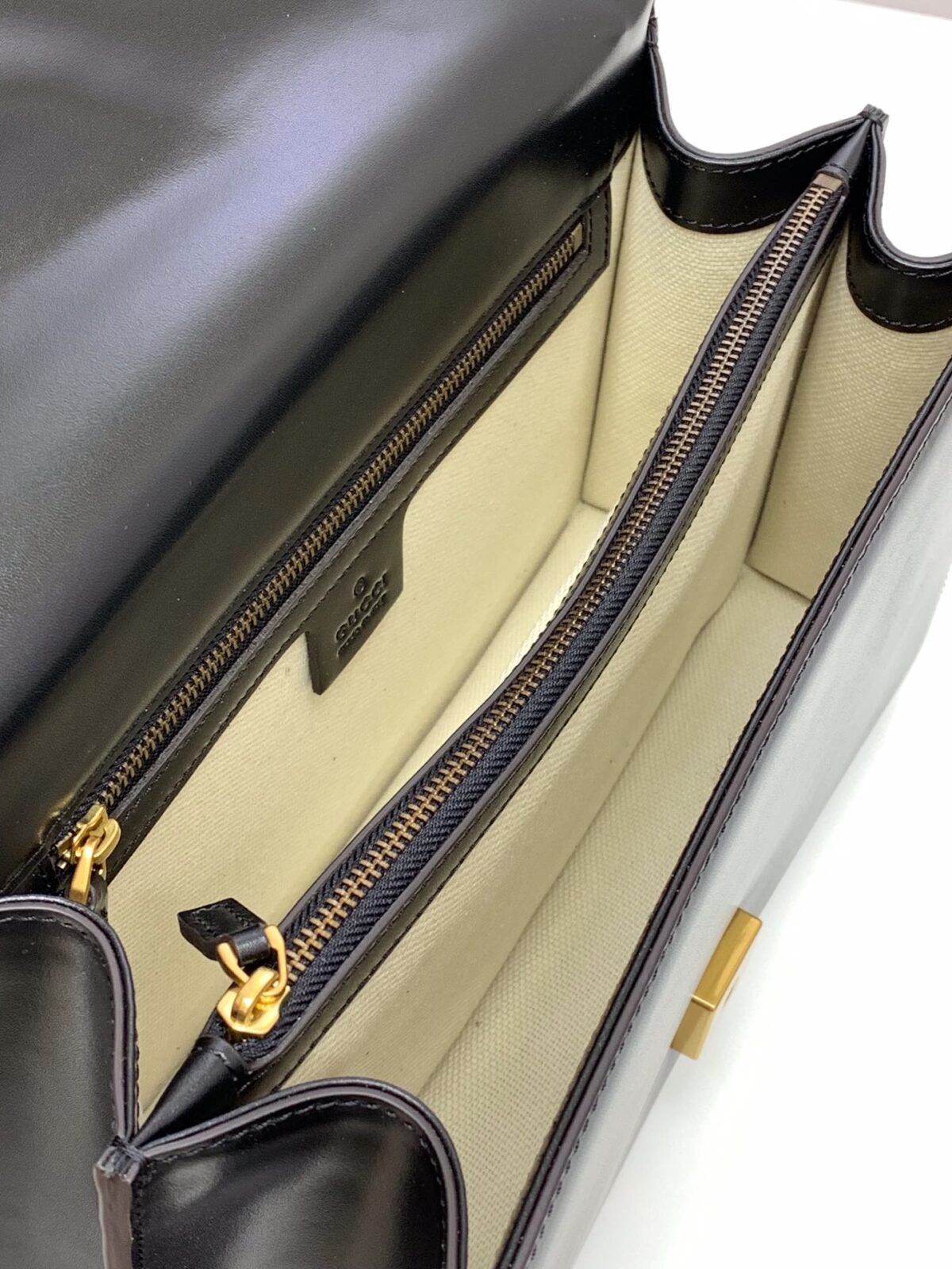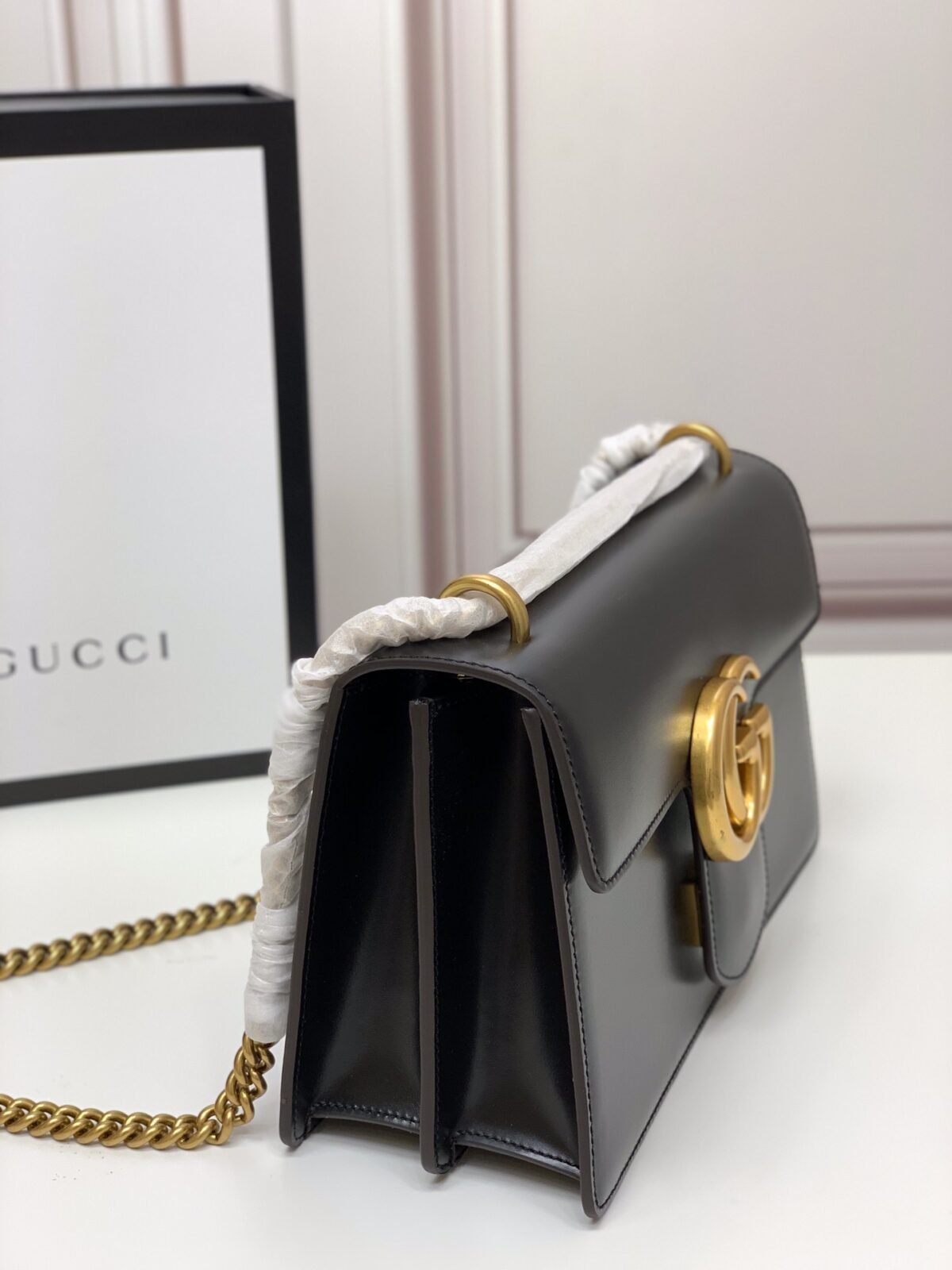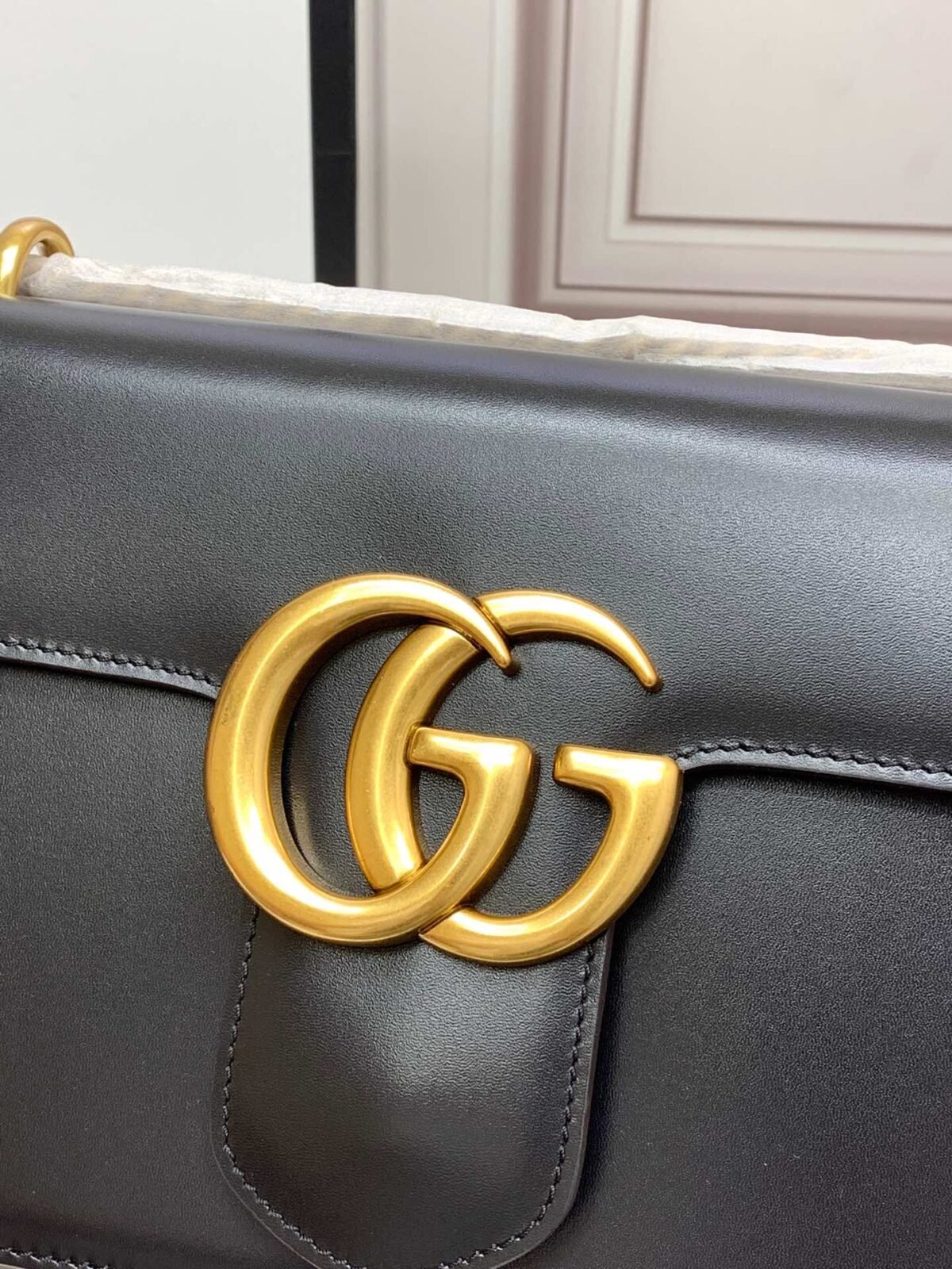 Hardware: Gleaming gold-toned oversized Double G logo and chain shoulder strap.