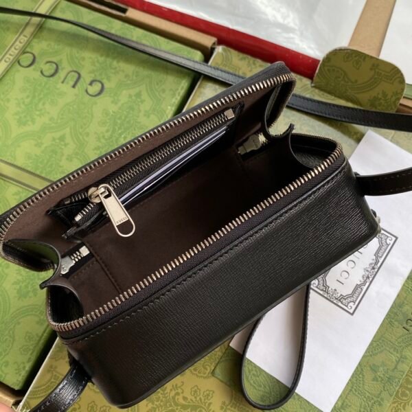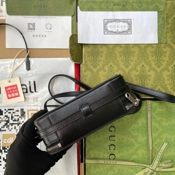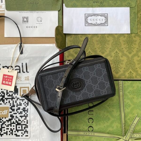 Iconic Details & Everyday Practicality The front of the bag is anchored by a distinctive oval leather patch featuring the classic embossed Interlocking G logo. A secure, smooth-gliding top zipper keeps your essentials safely tucked away. Designed for effortless on-the-go wear, it comes equipped with a slender, matching black leather shoulder strap, allowing for comfortable and chic crossbody or shoulder styling.