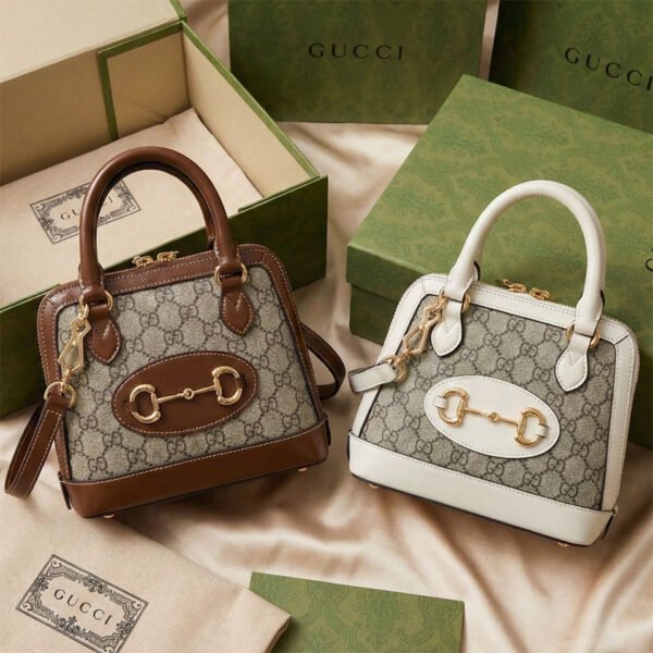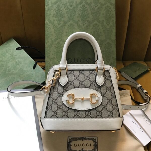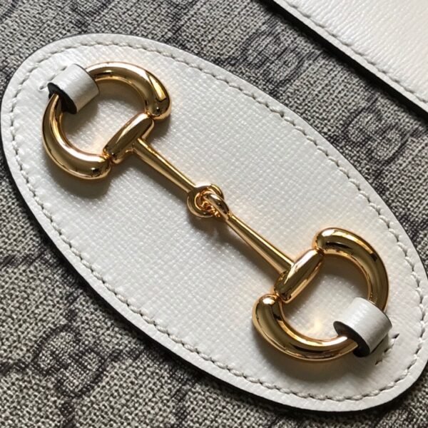 The bag is beautifully constructed from the House’s premium beige and ebony GG Supreme artificial canvas, seamlessly framed by meticulously crafted leather detailing. The absolute focal point of this design is the legendary Horsebit emblem—a heritage design element comprised of a double ring and bar that honors the brand’s equestrian roots and has become one of Gucci’s most dazzling and recognizable signature symbols.