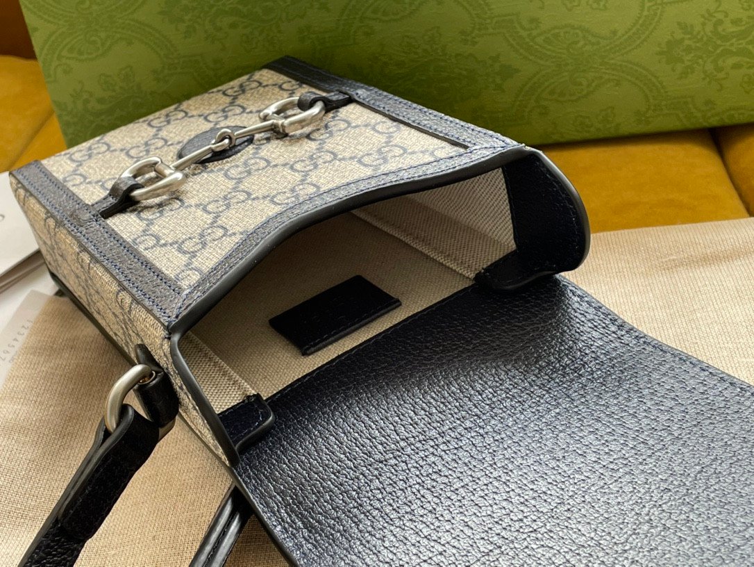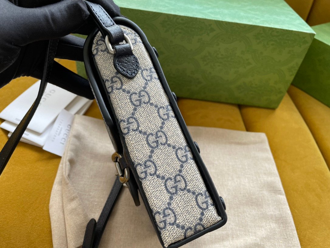 Equestrian Heritage & Premium Materials Crafted to exceptional standards, this bag utilizes imported PVC (representing the signature GG canvas) elegantly framed by premium original factory leather trim. The centerpiece of the design is the iconic equestrian-inspired hardware, featuring the universally recognized double ring and bar motif on the front flap.