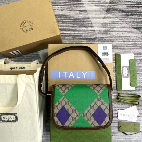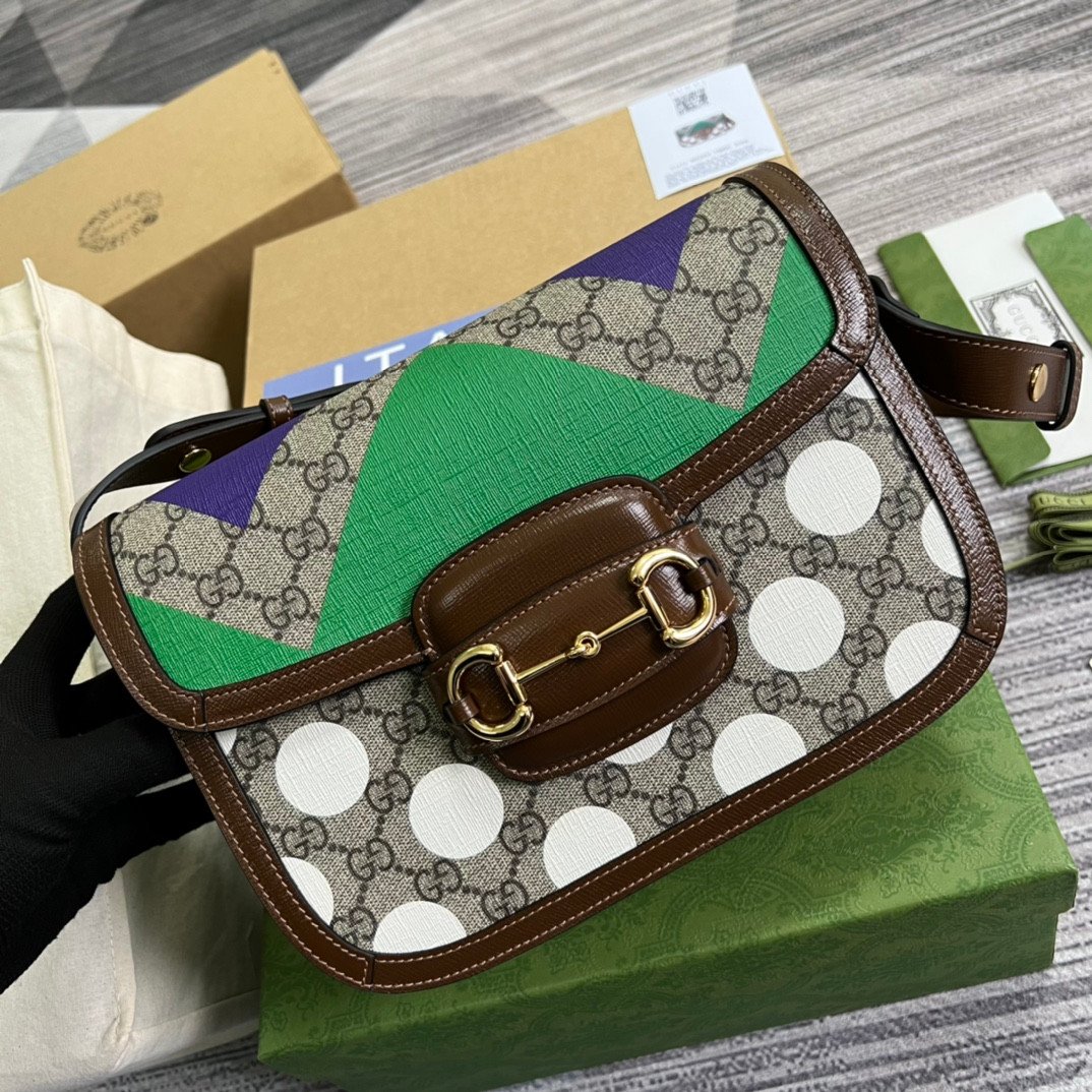 Introduce a vibrant, show-stopping piece to your collection with this unique iteration of the beloved Gucci Horsebit 1955 series. This specific design elevates the elegant charm of the classic silhouette by introducing bold, colorful patterns that command attention.