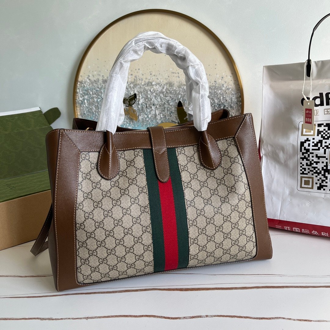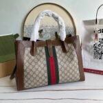 GG Supreme Canvas: A heritage-inspired option featuring the classic beige/ebony GG canvas, beautifully framed by rich brown leather trim and highlighted by the signature green and red Web stripe running down the center.