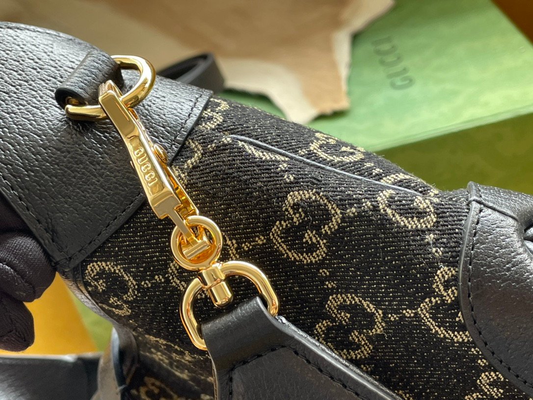 Premium Materials & Design Crafted using original factory leather and the signature GG denim canvas, the bag offers a refined yet effortlessly edgy aesthetic. The compact size is described as incredibly cute and delicate, making it a perfect, fashionable everyday companion. The front is beautifully secured by the iconic metallic piston closure.