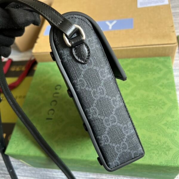Step into modern elegance with this sleek vertical mini bag, a standout piece from the celebrated Gucci Love Parade collection. This design takes the House’s historic materials and reimagines them in a classic, timeless black and grey colorway, perfectly suited for the contemporary wardrobe.