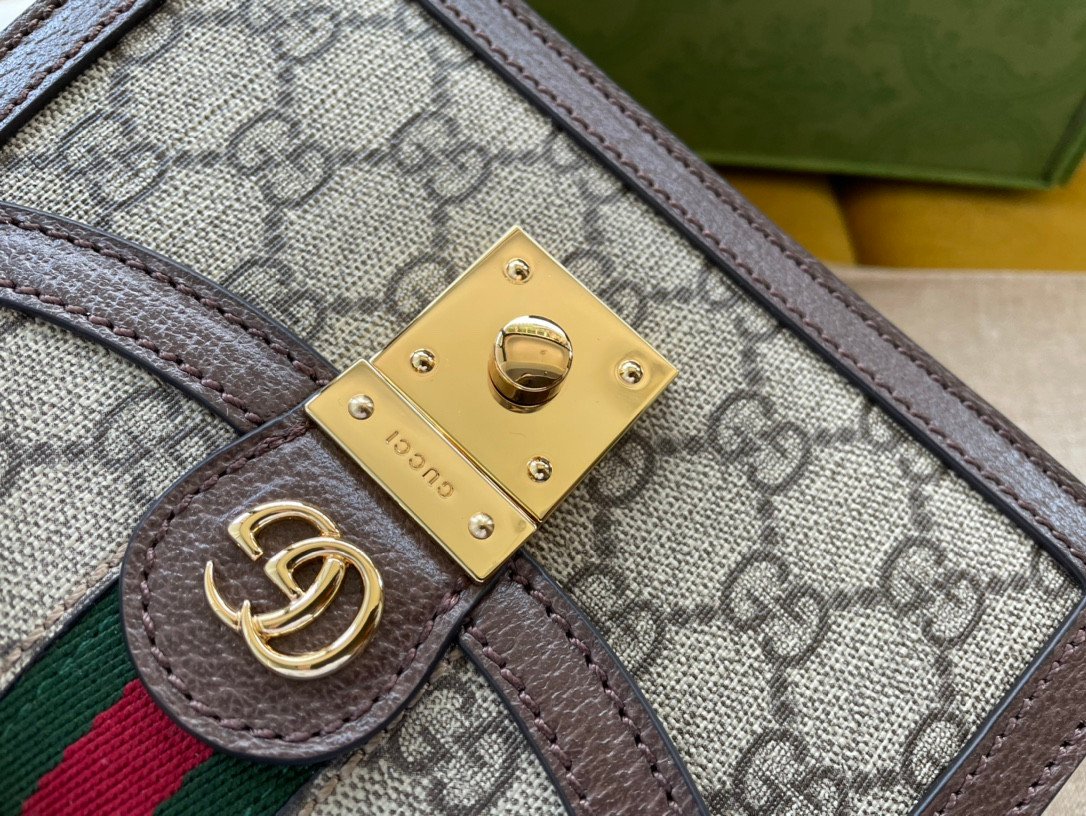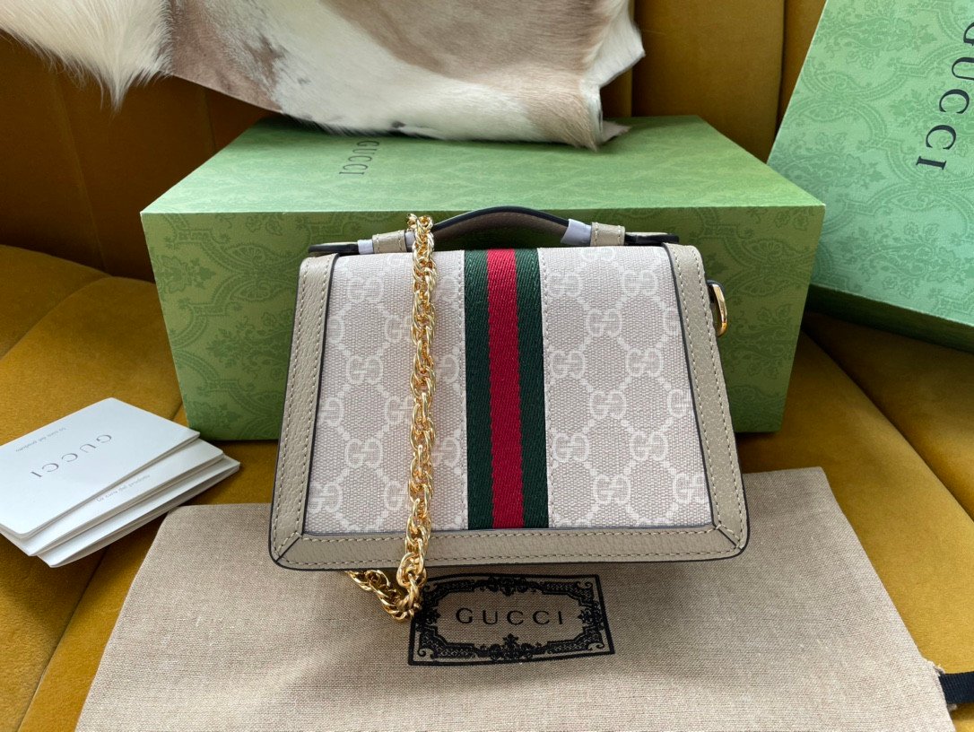 Premium Craftsmanship & Iconic Details Crafted to exacting “original factory” standards, the bag utilizes premium, high-density PVC to create the durable and textured GG Supreme canvas. The structured, mini briefcase-style shape is exquisitely framed by smooth leather trim and features the collection’s most recognizable signature: the striking Green and Red Web stripe running down the center of the front flap. To complete the classical aesthetic, the flap is secured by a sleek metallic closure topped with the gleaming gold-toned Double G emblem.