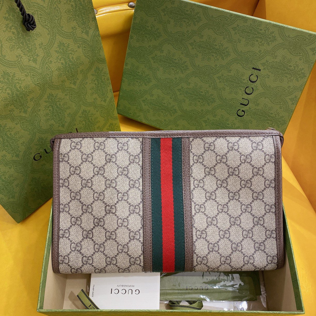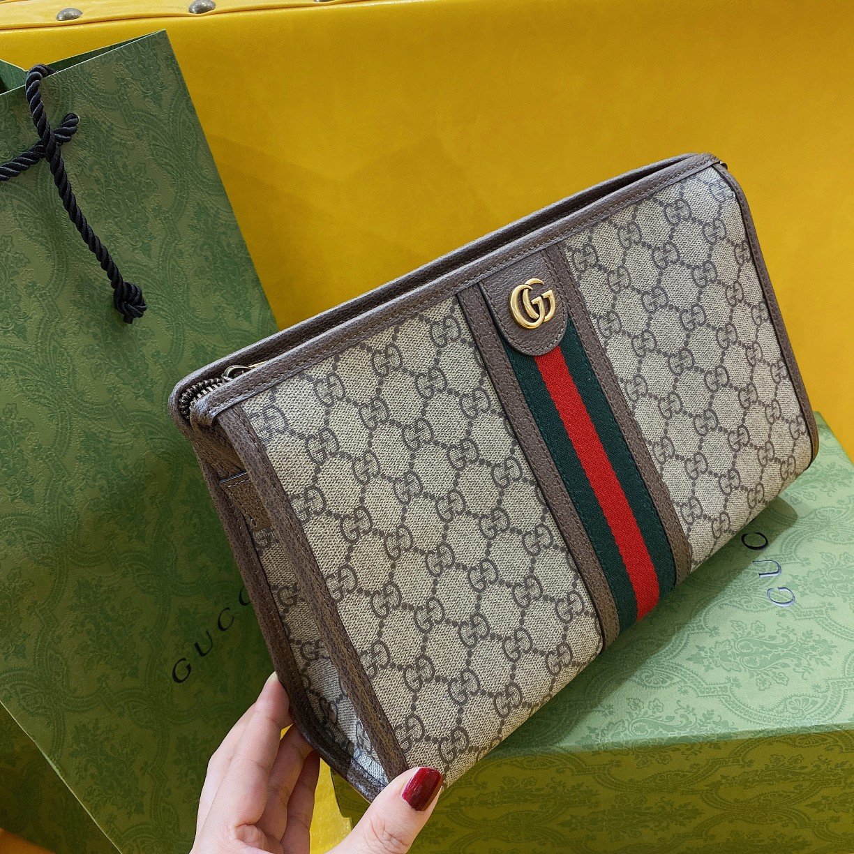 Introduce your customers to the perfect blend of timeless aesthetics and everyday functionality with the Gucci Ophidia Pouch. Expertly modeled directly from the authentic design, this top-tier clutch is highly recommended not only for its striking vintage appearance but also for its exceptionally generous storage capacity.
