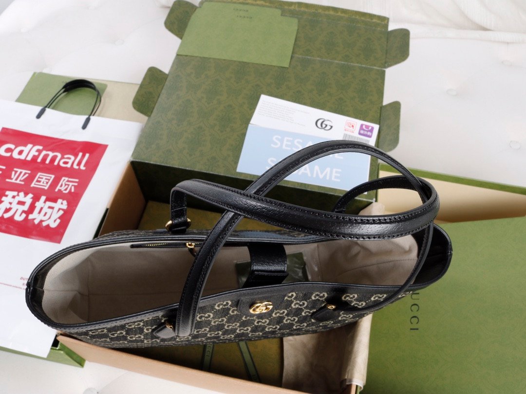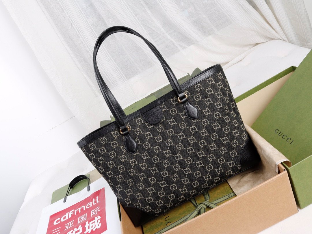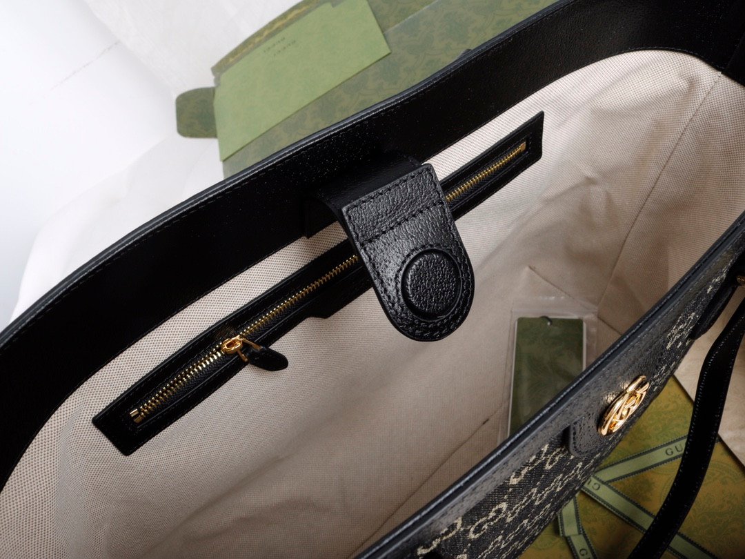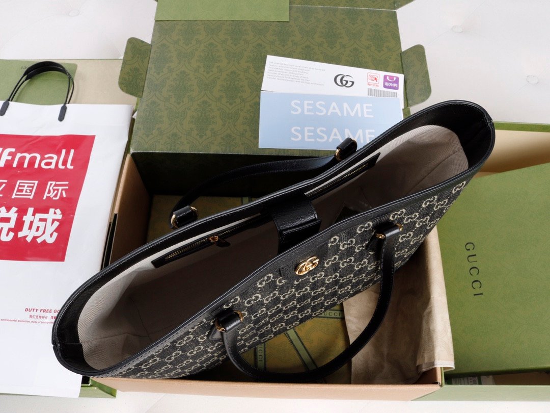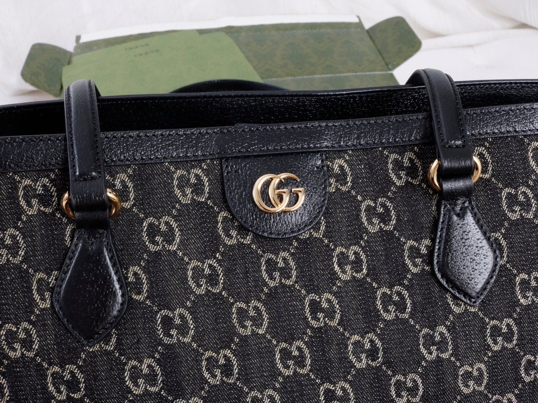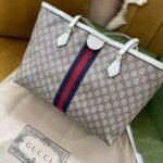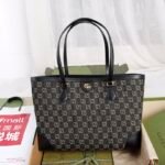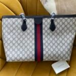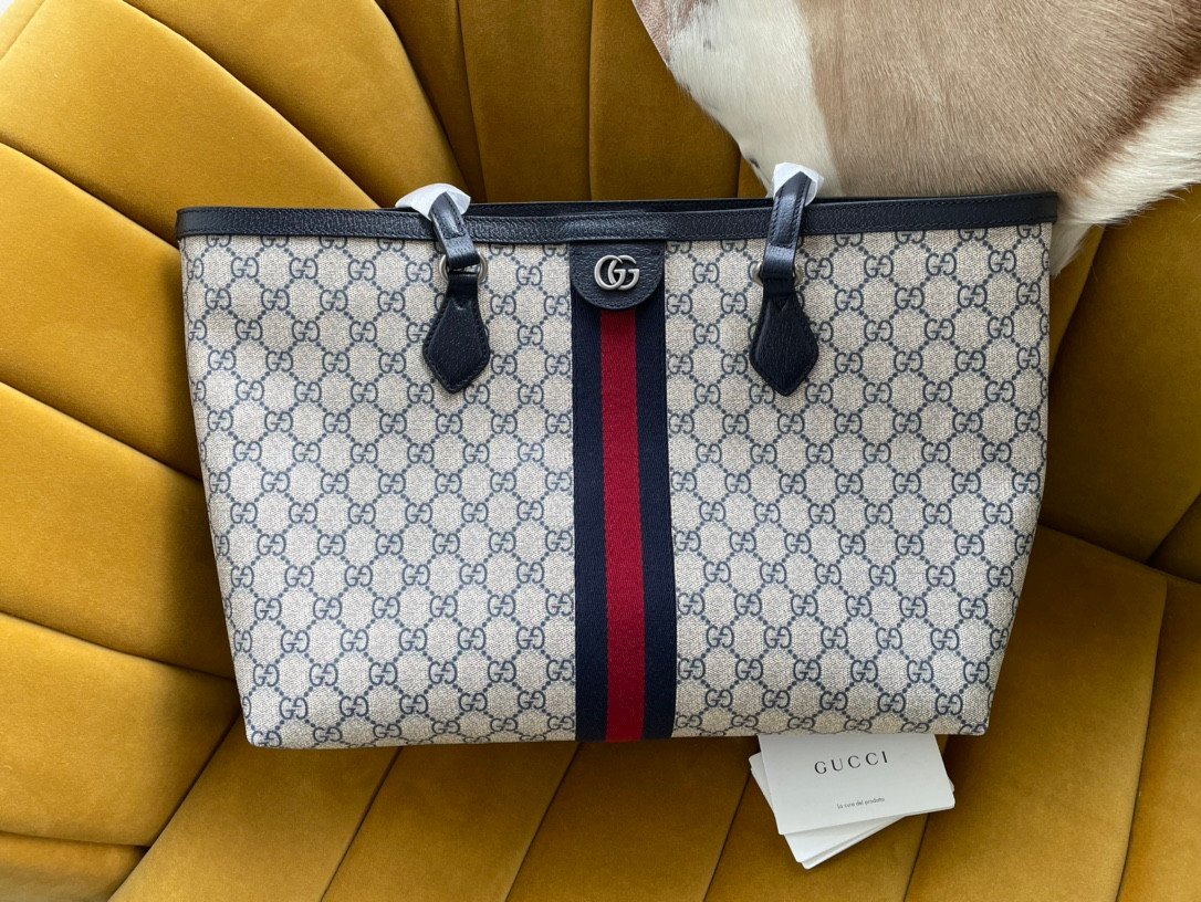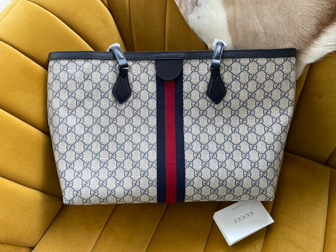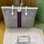 Premium Craftsmanship & Iconic Details Crafted utilizing top-tier “original factory” textured leather for its elegant trim, this tote ensures both durability and a luxurious feel. The design proudly displays the classic signature Double G hardware elegantly placed at the top center of the bag. Embodying the rich heritage of the Ophidia line, the prominent use of the GG pattern and the signature striped Web detailing makes this piece an instant classic.
