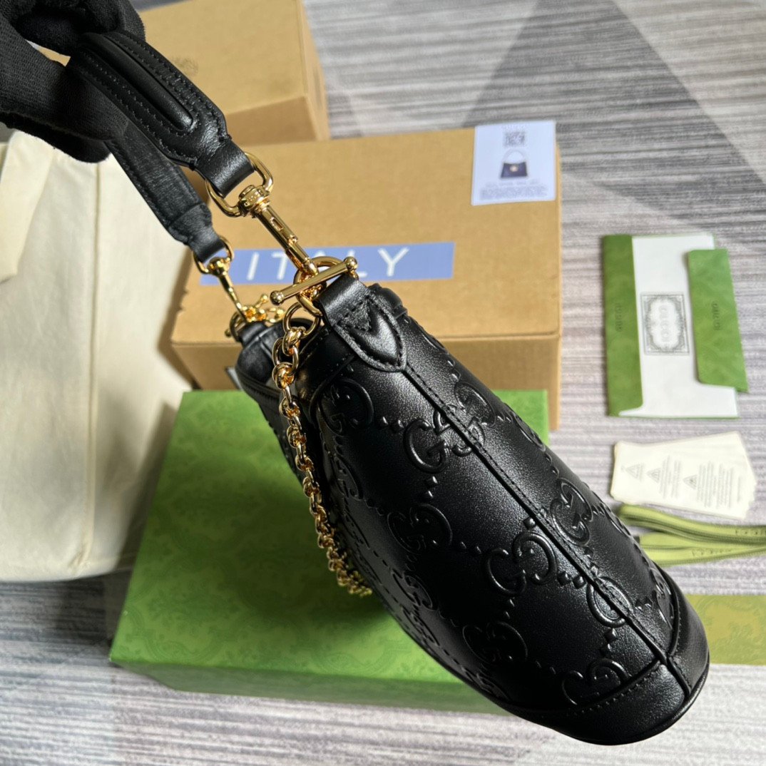 The iconic GG motif, a symbol with decades of heritage, is beautifully reimagined in this stunning piece. This signature pattern not only represents the founder’s initials but also serves as a subtle homage to the classic Gucci rhombus design originating from the 1930s. The bag is exquisitely crafted from premium leather featuring an all-over embossed GG print, delivering a highly tactile, sophisticated, and luxurious finish.