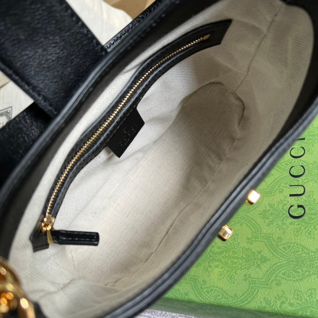 Merging classic craftsmanship with modern innovation, this curated item is equipped with an integrated Gucci Tag. This built-in NFC technology allows you to easily verify the bag’s authenticity and unlocks a unique, interactive digital experience. The main compartment is elegantly secured by a distinctive gold-toned padlock closure, proudly adorned with the Double G logo and stud detailing.