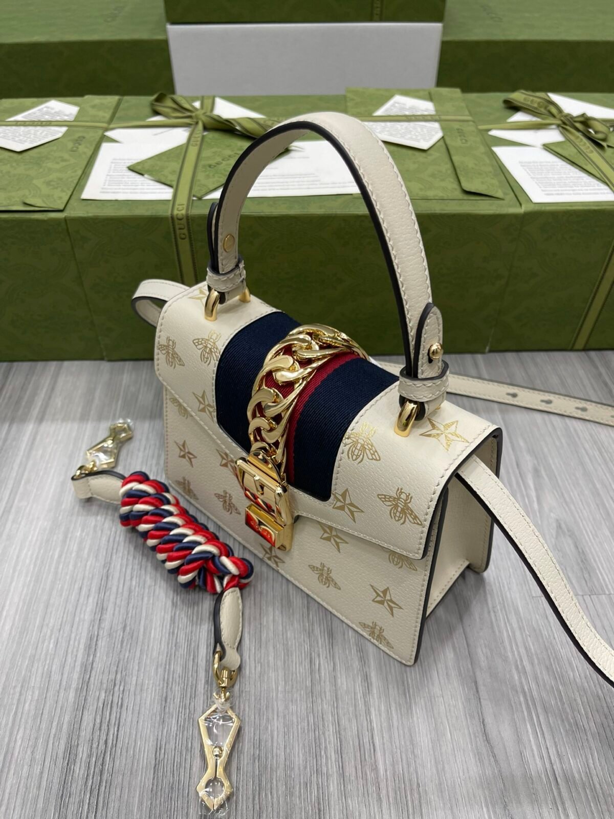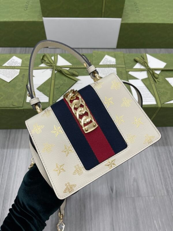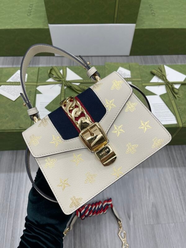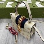 Step into the spotlight with the enchanting Gucci Sylvie Mini Top Handle Bag, a celebrity-favorite silhouette that perfectly balances vintage charm with playful, contemporary elegance.