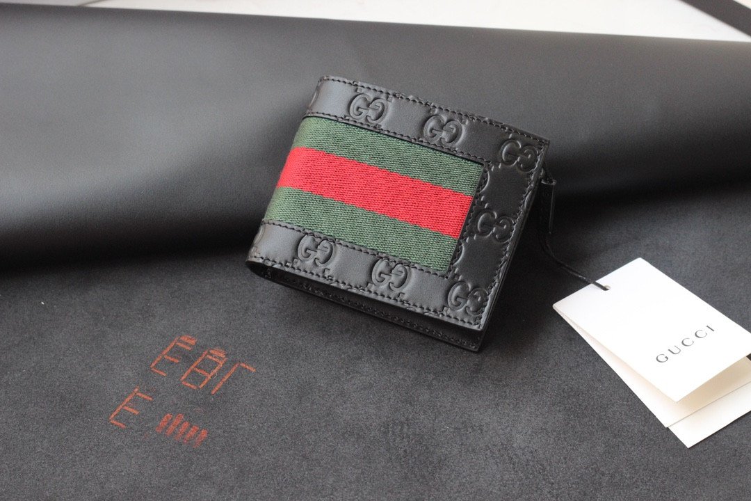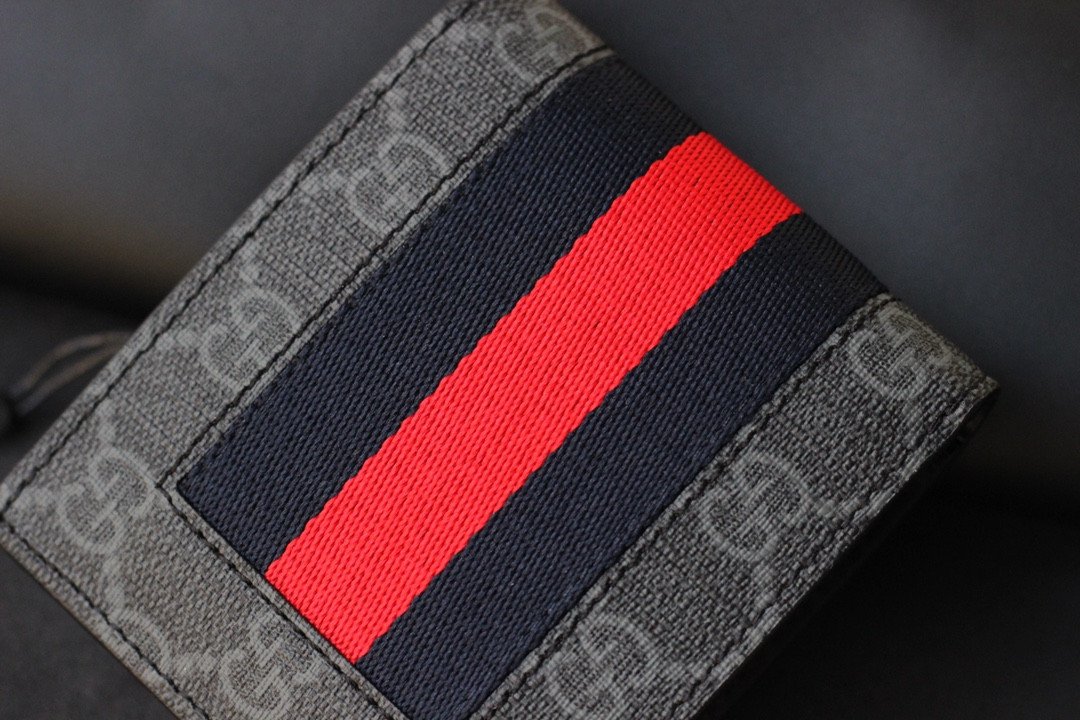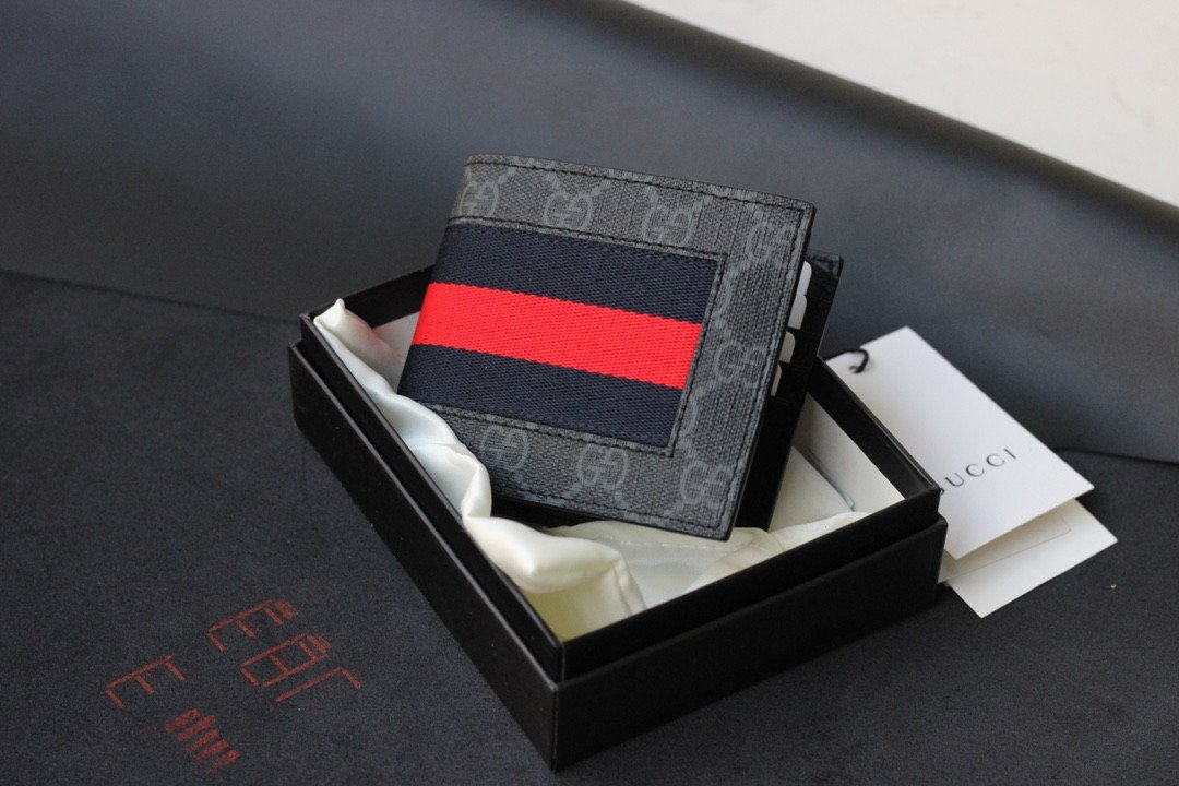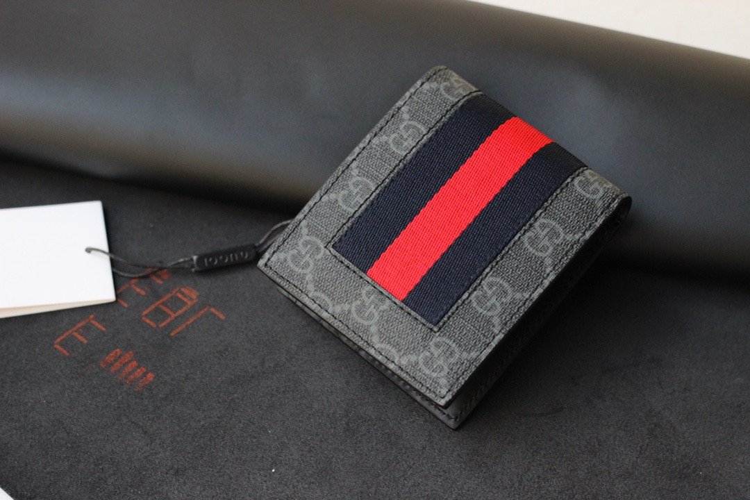 Elevate your everyday carry with this masterful fusion of iconic House codes. Carefully crafted, this classic bifold wallet seamlessly pairs two of Gucci’s most highly recognizable signatures: the classic GG motif and the iconic striped Web, creating a timeless and sophisticated accessory for the modern gentleman.