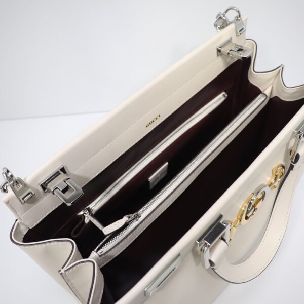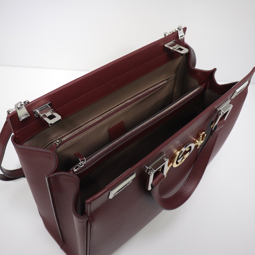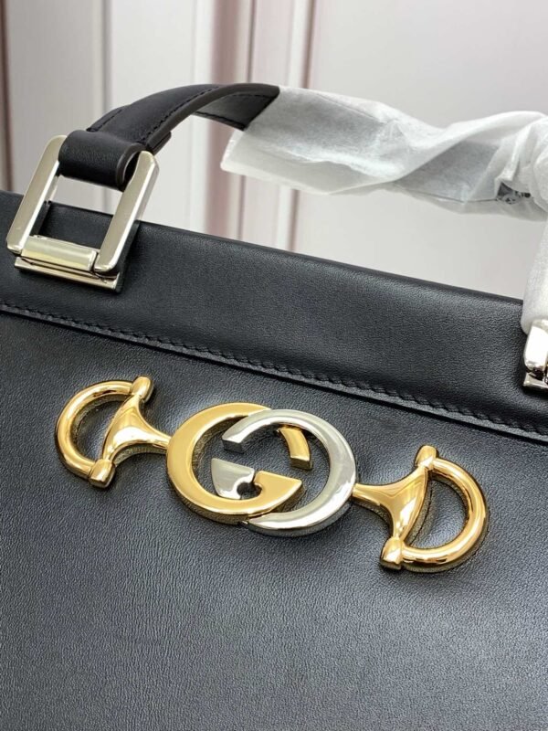 Iconic Signature Hardware The true focal point of this structured tote is the distinctive, mixed-metal front hardware. It masterfully merges two of the House’s most recognizable historical codes—the Interlocking G and the equestrian-inspired Horsebit—rendered in contrasting gold and silver tones for a highly versatile and eye-catching aesthetic.