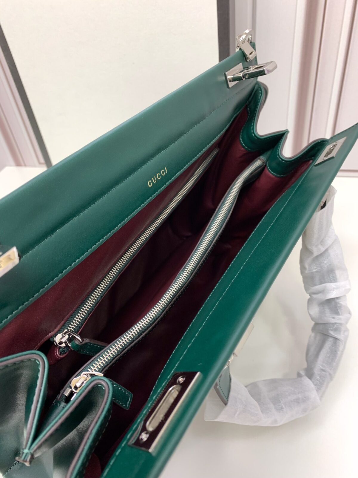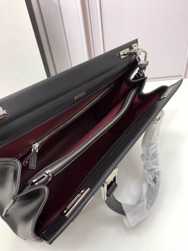 Elevate your accessory collection with this sophisticated and structured Gucci Top Handle Bag. Designed to meet top-tier boutique quality standards, this piece beautifully combines a timeless silhouette with striking, modern hardware details.