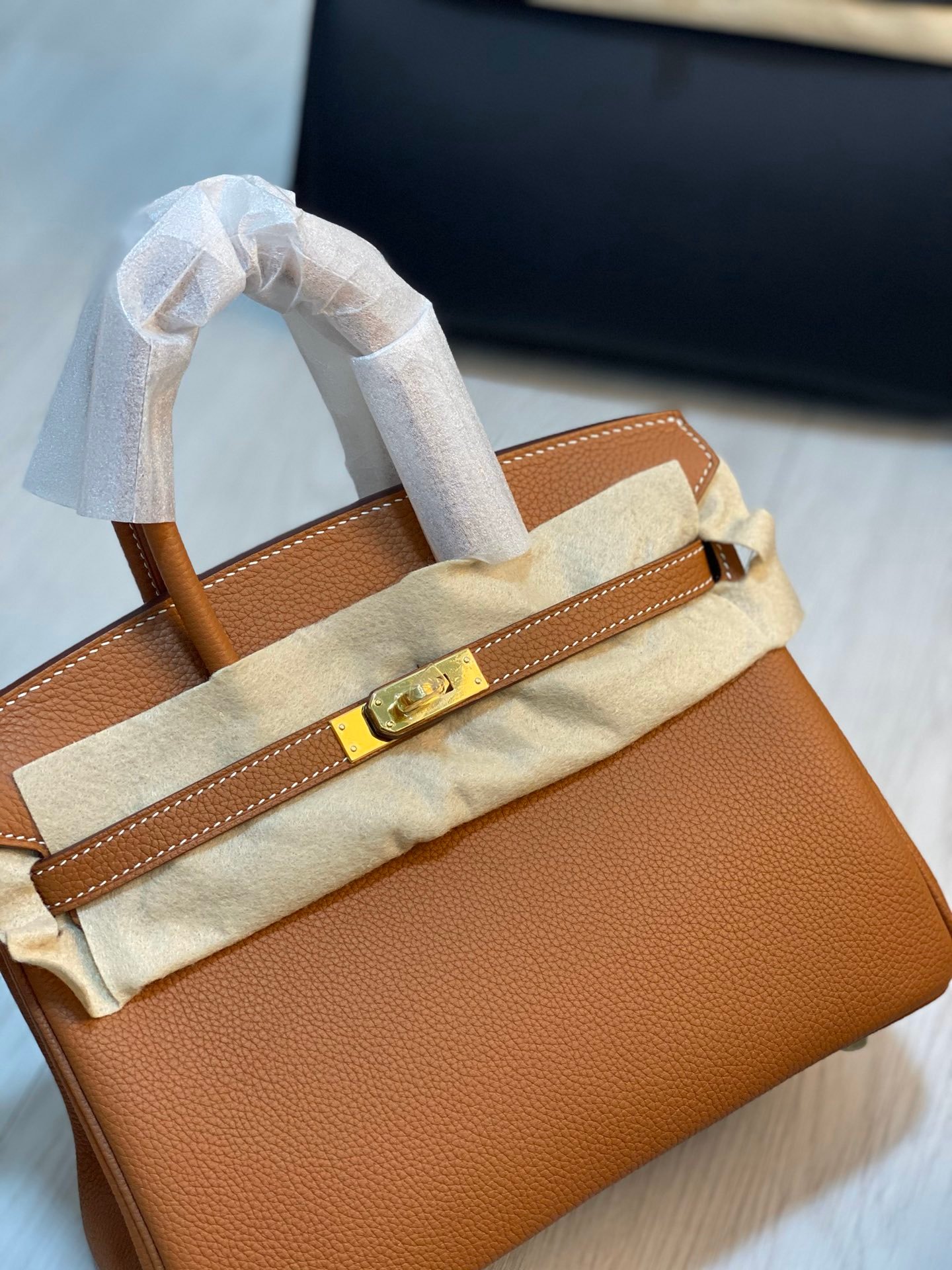 100% Premium Togo Calfskin: Famous for its pebbled grain, durability, and ability to hold its shape.