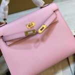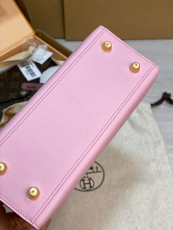 Epsom Leather (Pink): The Pink model showcases the structured Epsom leather, which is lightweight, durable, and holds the bag’s architectural shape rigidly over time.