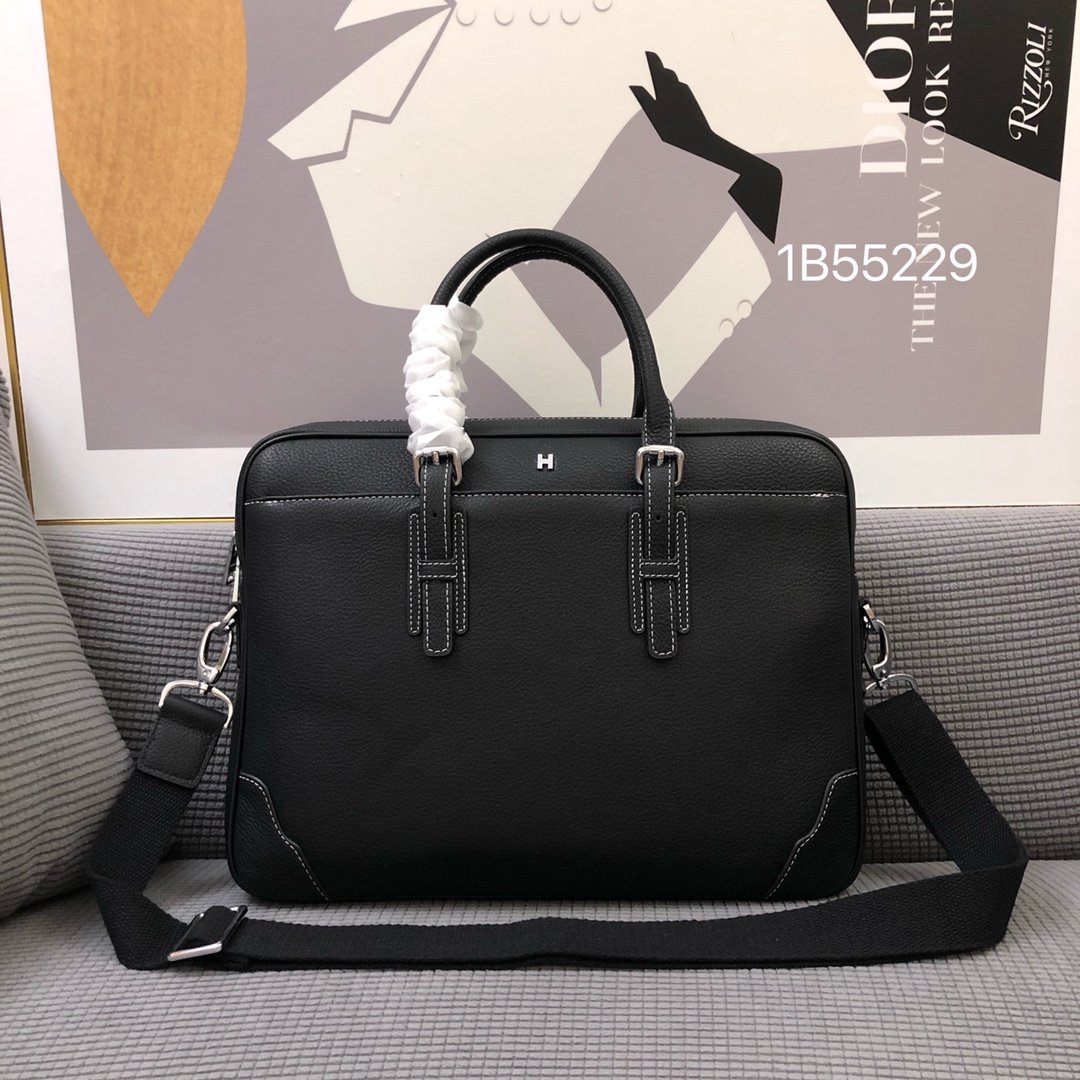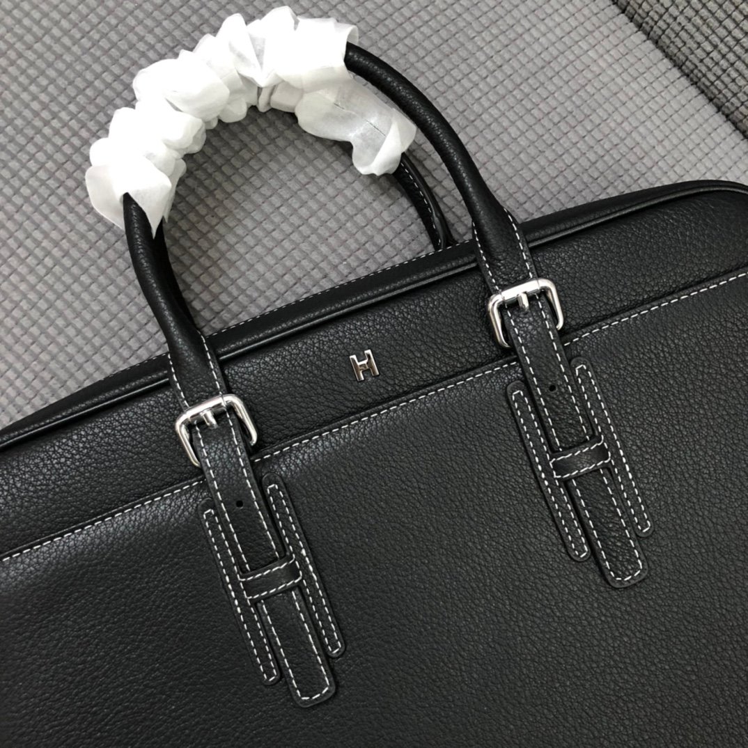 Contemporary Business Class Introducing the Hermès Model 55229 Briefcase, a perfect synthesis of modern casual style and high-end business functionality. This bag stands out with its minimalist metal “H” logo centered near the top, offering a discreet yet powerful brand statement.