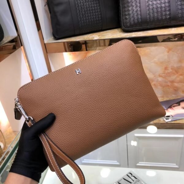 Refined Minimalism & Superior Comfort Experience the latest 2021 Hermès Men’s Clutch, a testament to understated luxury and practical design. Unlike other models, this edition features a minimalist metal “H” logo, adding a sharp, modern accent to the soft leather body.