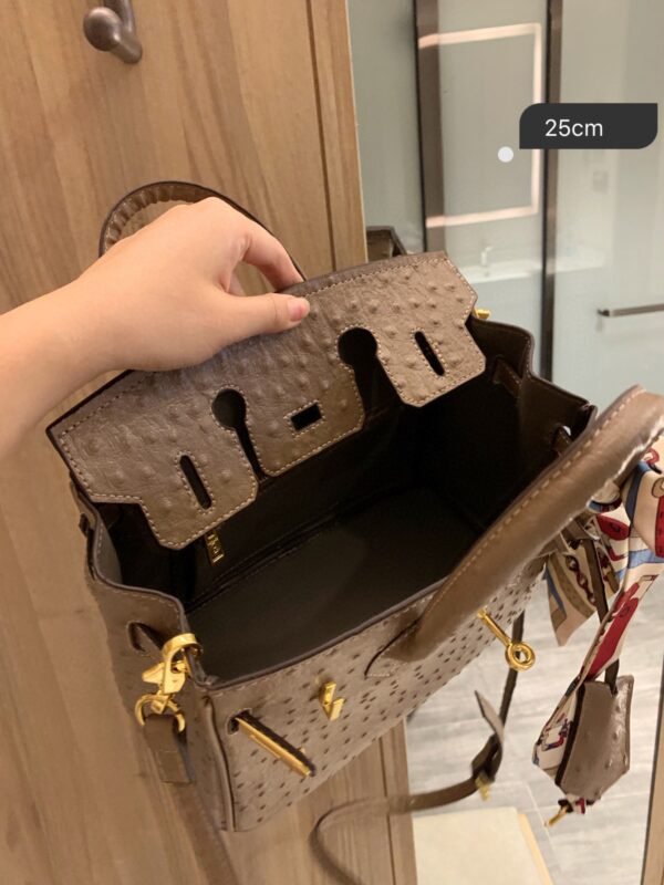 Elevate your accessory game with a piece that defines sophistication. Inspired by the most iconic silhouette in fashion history, our Ostrich Pattern Birkin-Style Handbag is more than just a bag—it is a statement of grace, power, and impeccable taste. Designed for the modern woman who appreciates the finer things in life, this 25cm masterpiece offers the perfect blend of high-end aesthetics and daily functionality.