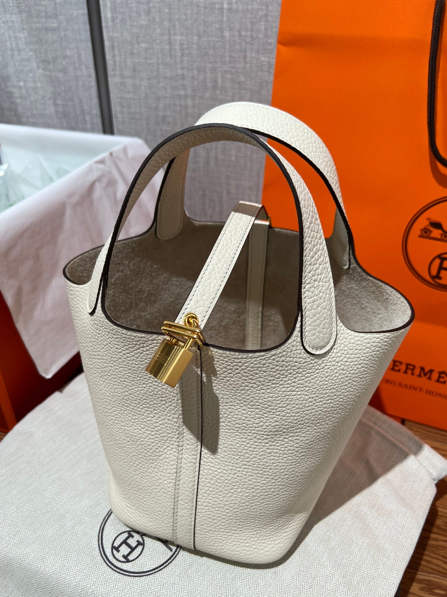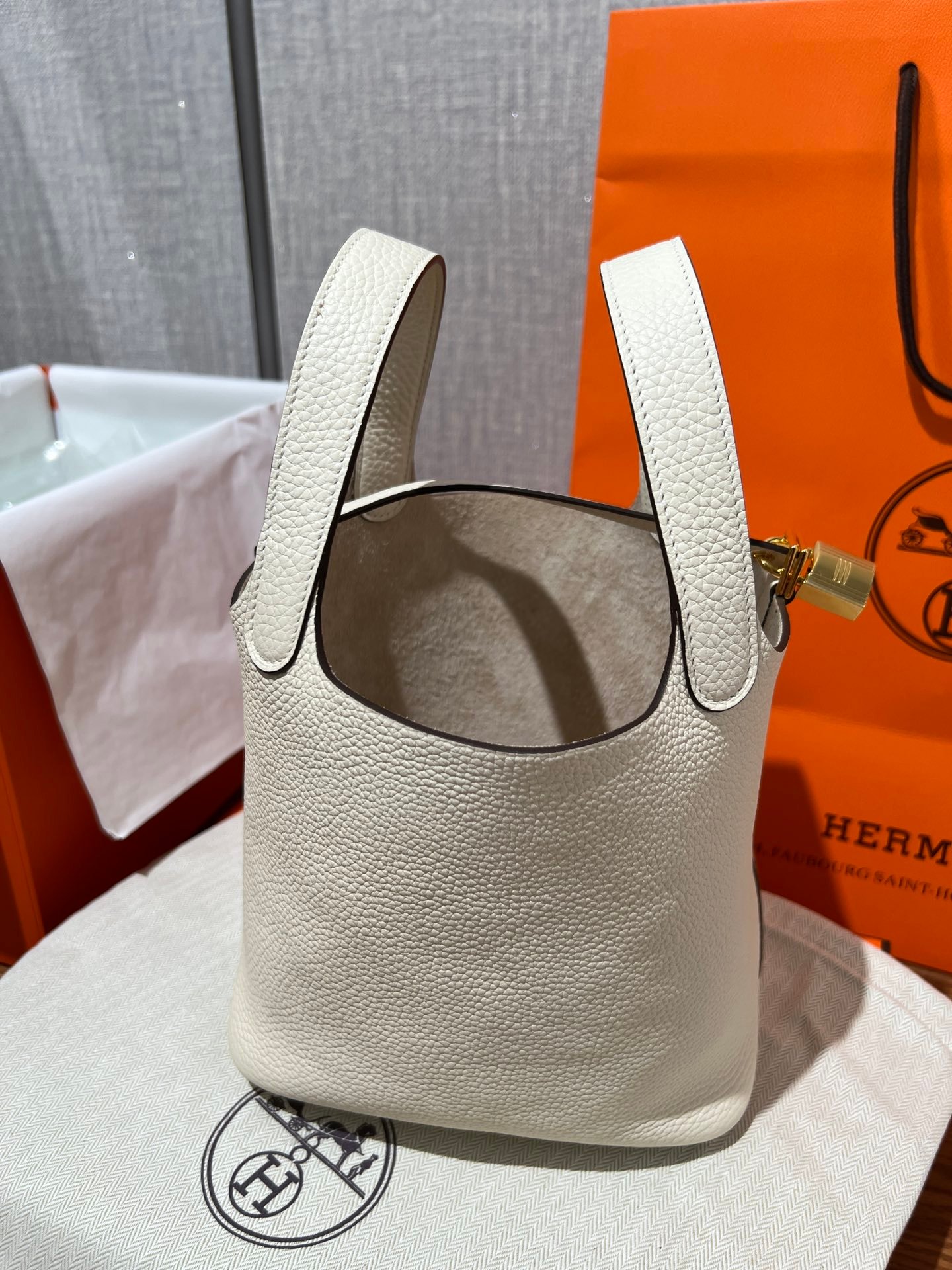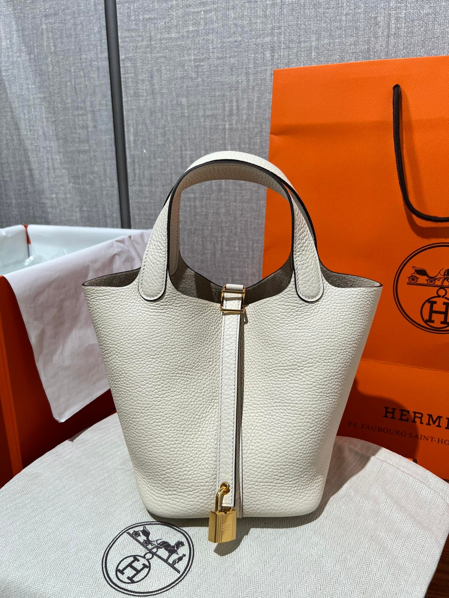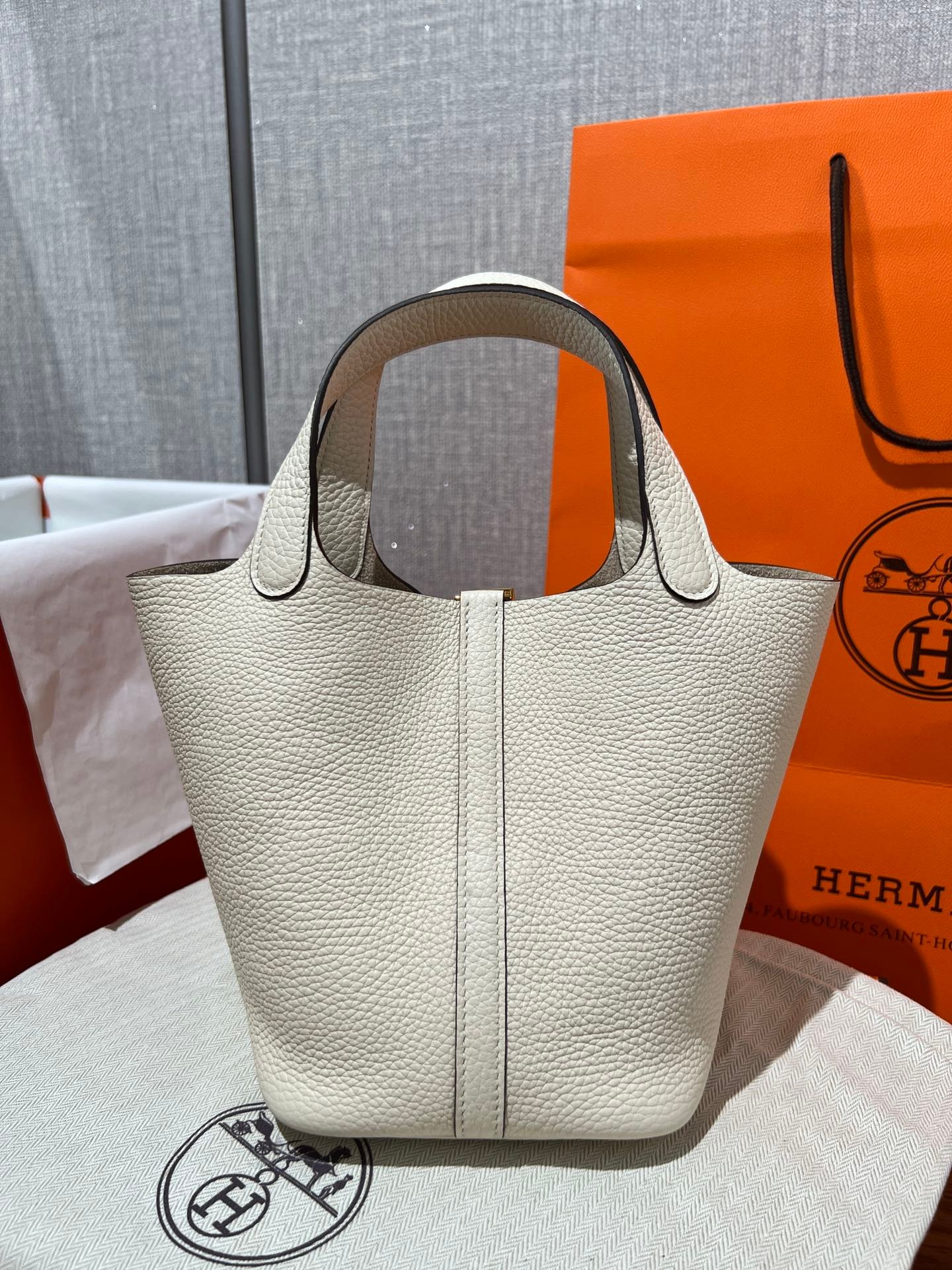 Elephant Gray (Etoupe): The quintessential classic. This iconic shade features beautiful contrast stitching that highlights the bag’s artisanal construction.