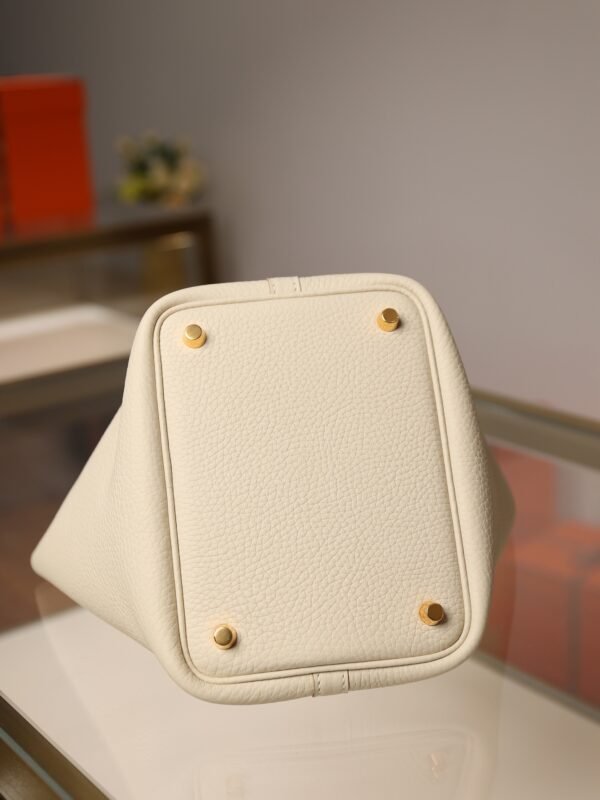 The Picotin 18 is designed with the modern woman in mind. Its open-top bucket shape allows for easy access to your essentials, while the four protective base studs (feet) keep the leather bottom clean and upright when placed on surfaces. The unlined interior showcases the raw beauty of the premium hide, providing a lightweight feel without sacrificing durability.