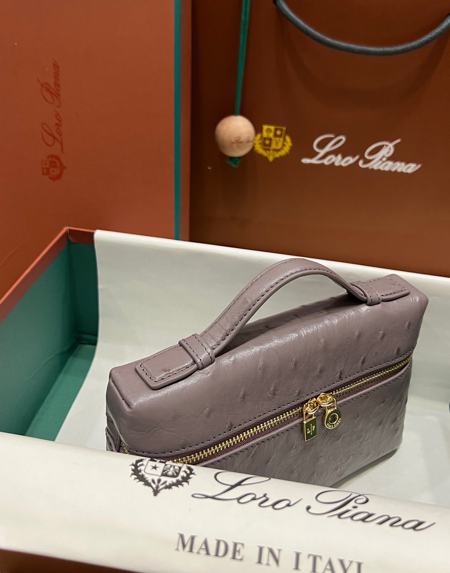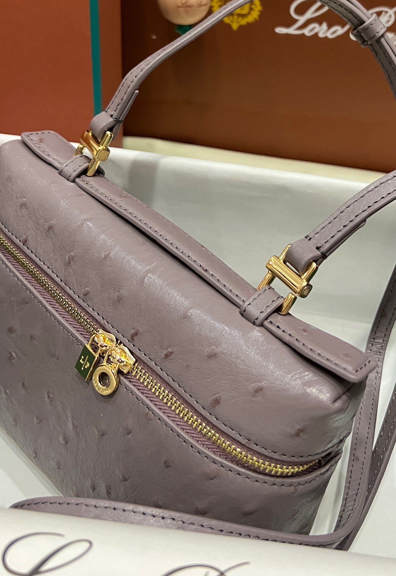 Exotic Minimalist Luxury The Loro Piana Extra Pocket L19 is the ultimate accessory for the modern connoisseur. Crafted from sumptuous Ostrich leather, this bag elevates the “Quiet Luxury” aesthetic with its rich texture and distinctive quill pattern, offering a tactile experience that is second to none.