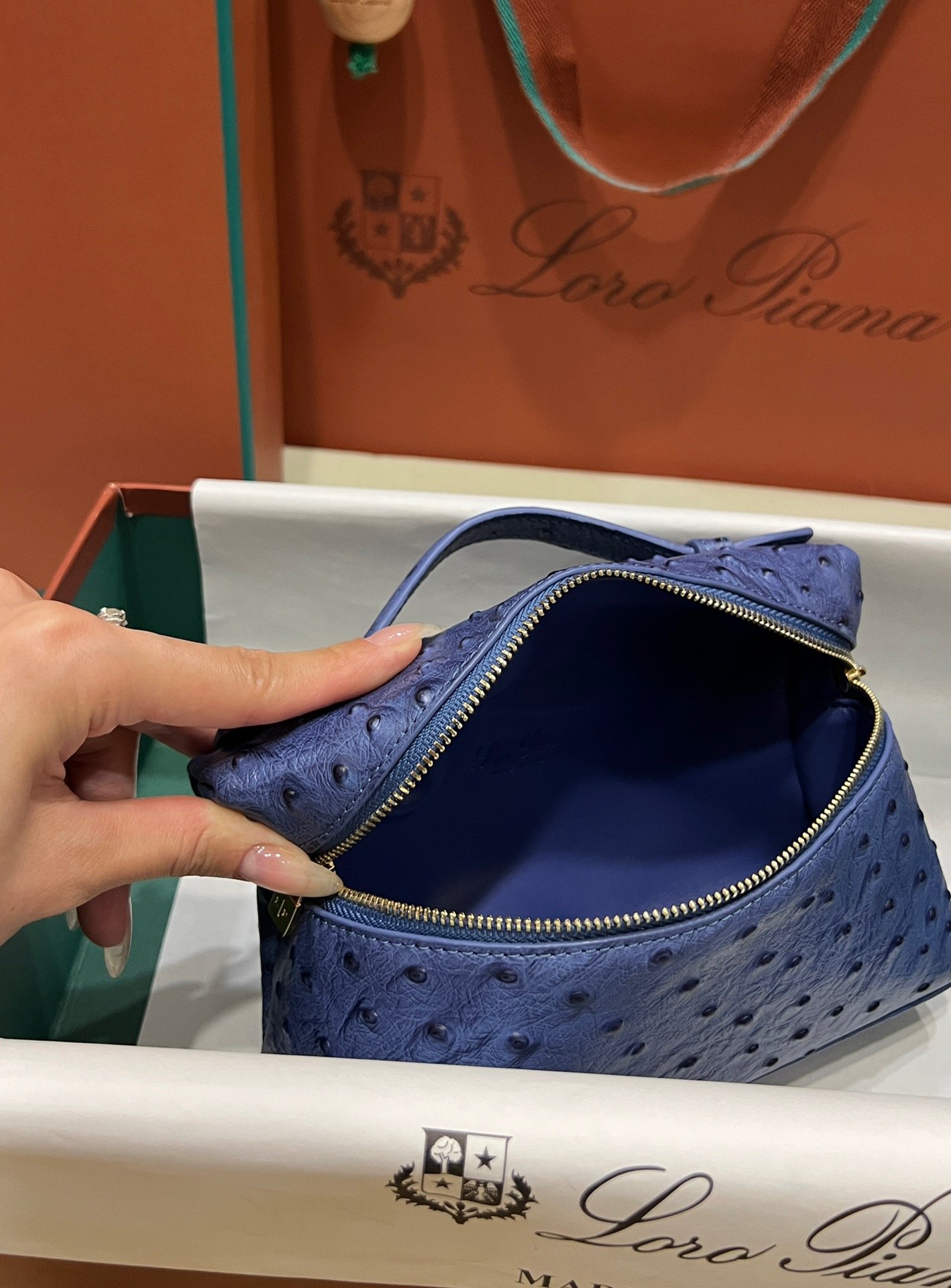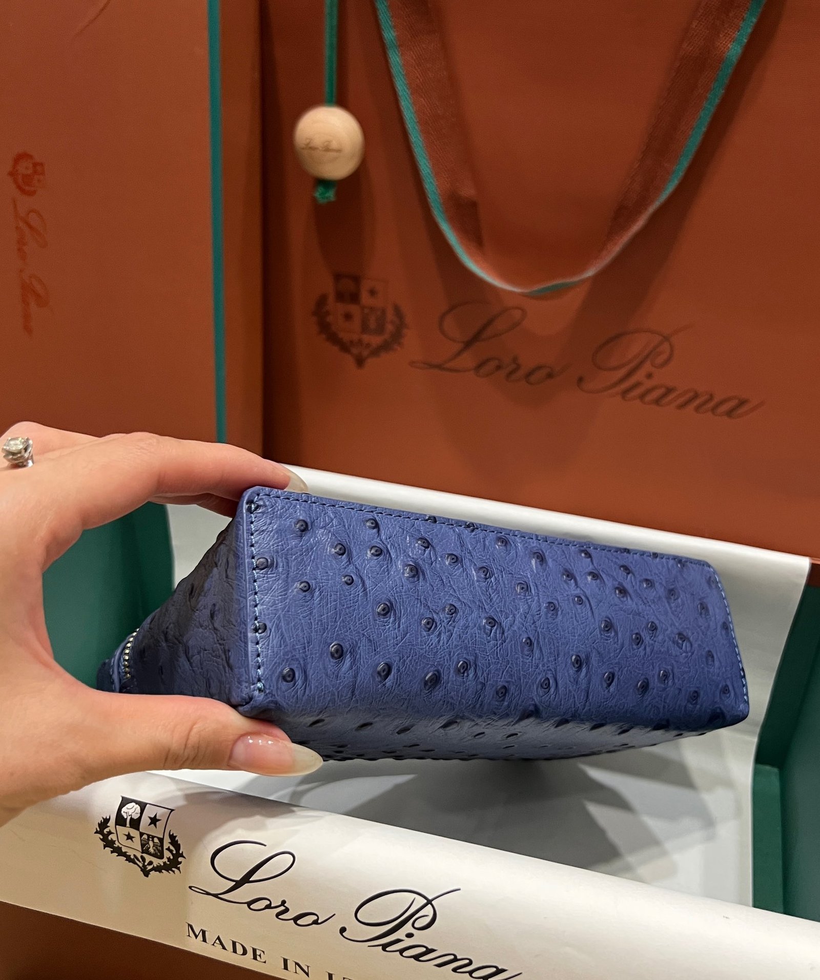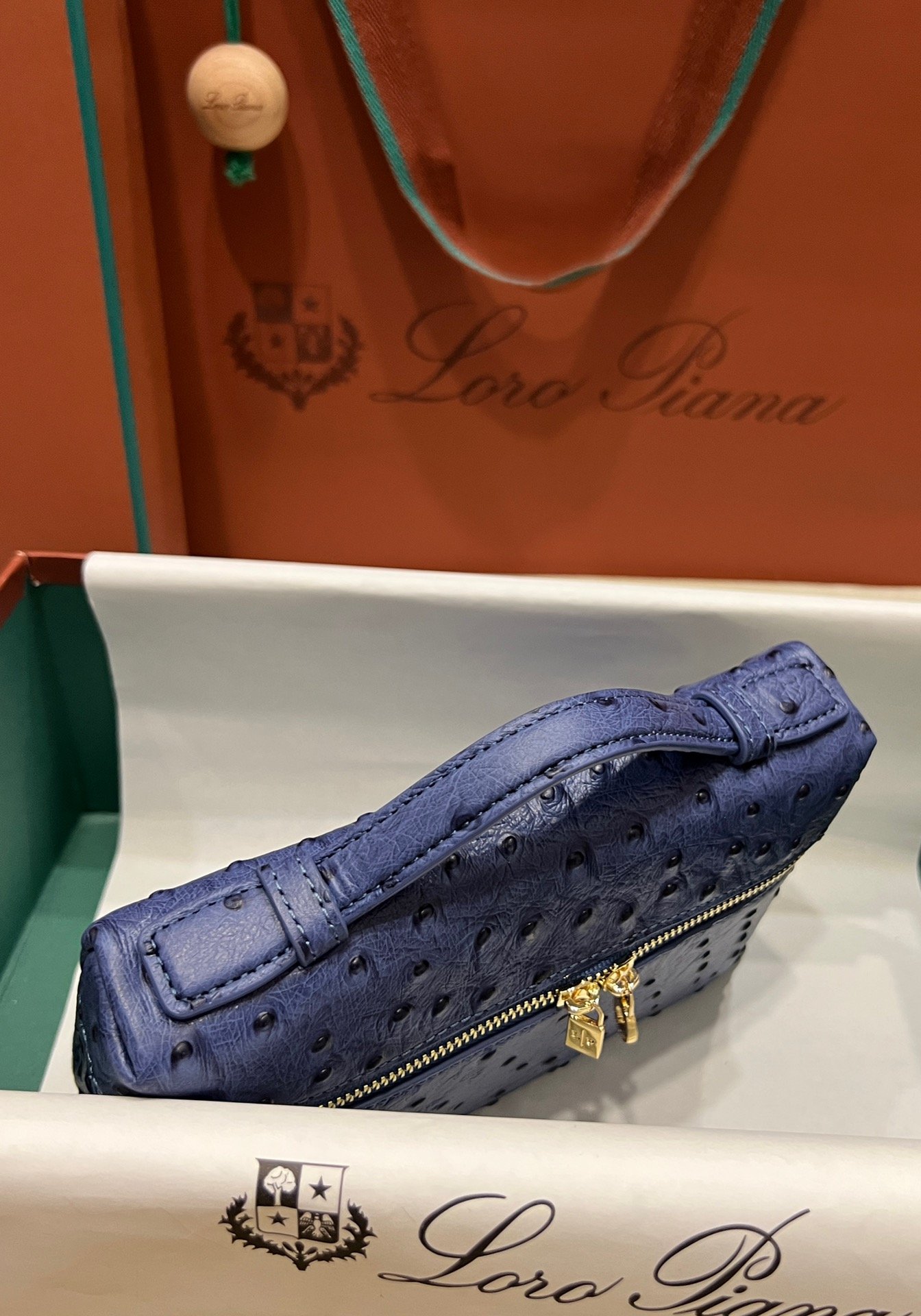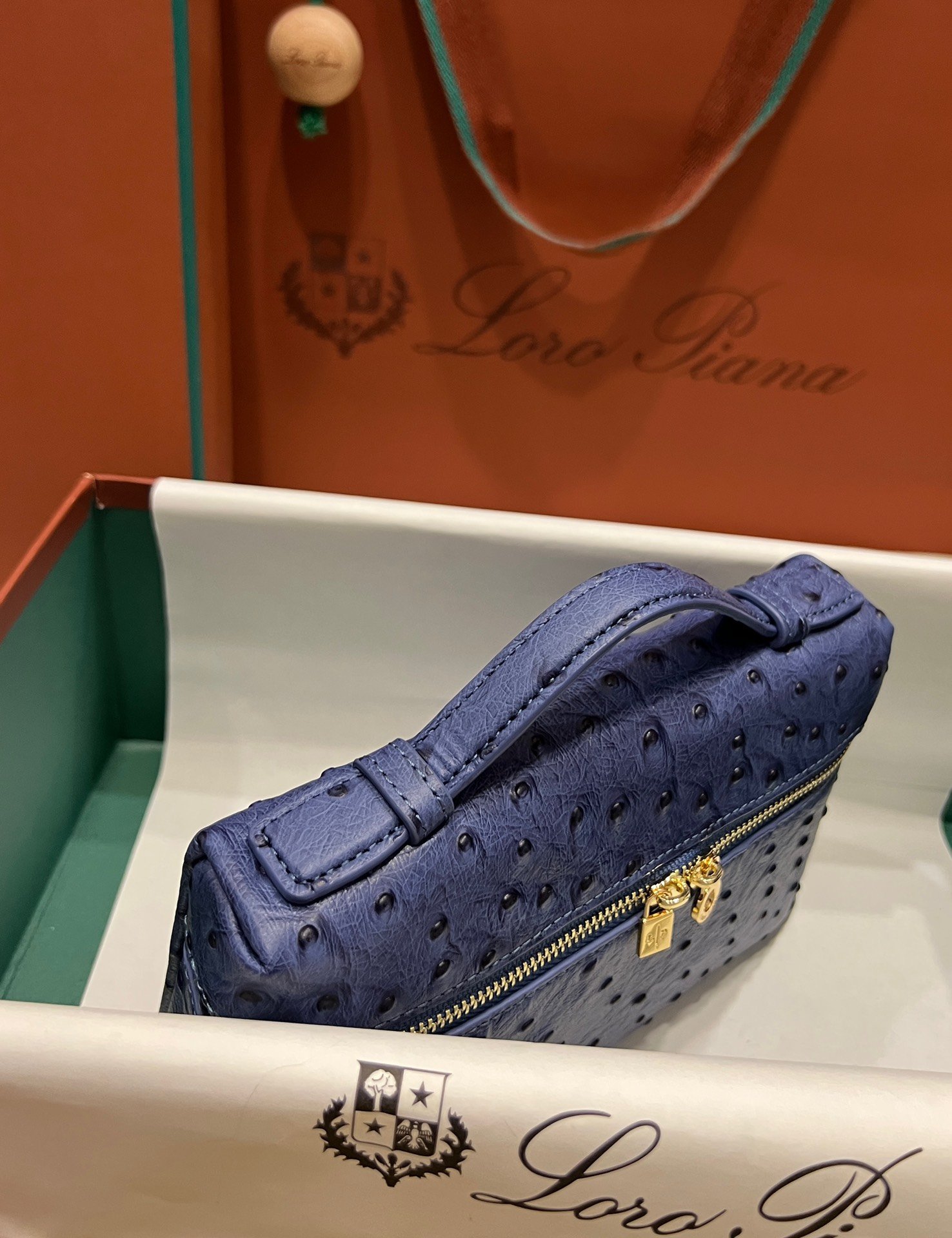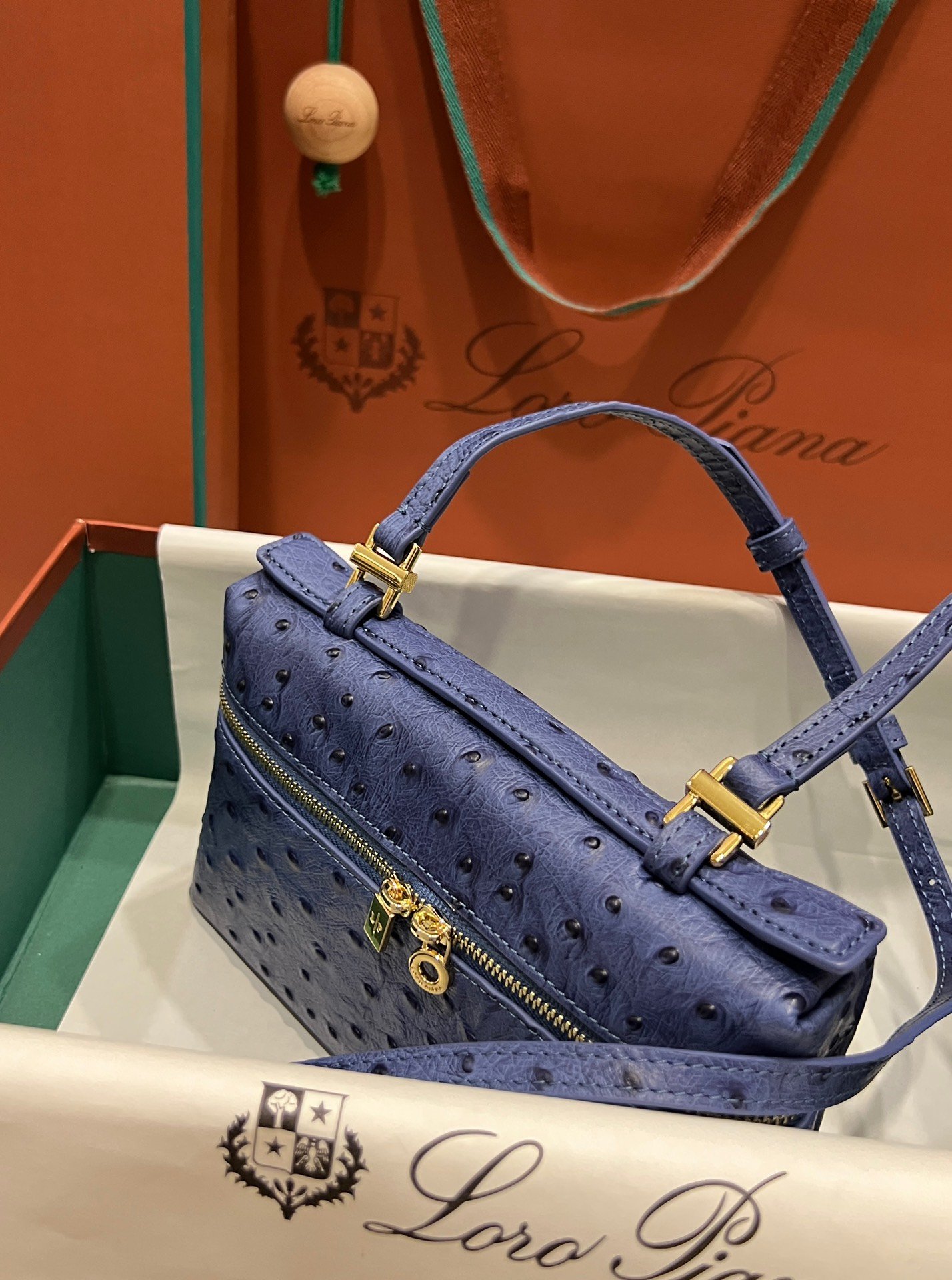Exotic Minimalist Luxury The Loro Piana Extra Pocket L19 is the ultimate accessory for the modern connoisseur. Crafted from sumptuous Ostrich leather, this bag elevates the “Quiet Luxury” aesthetic with its rich texture and distinctive quill pattern, offering a tactile experience that is second to none.