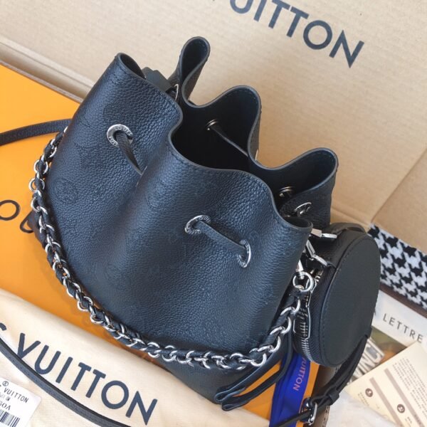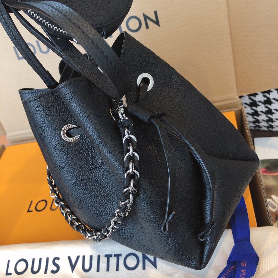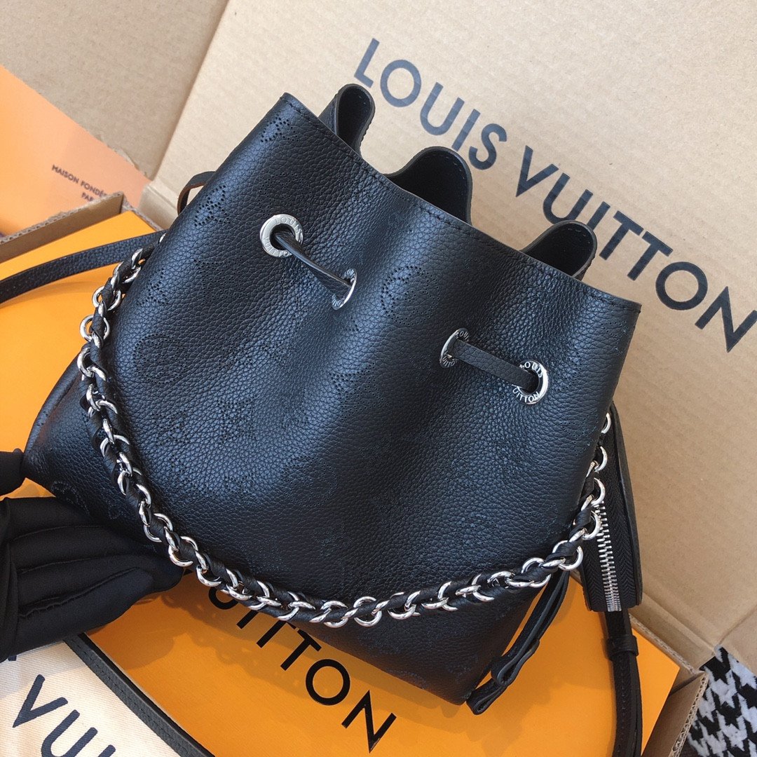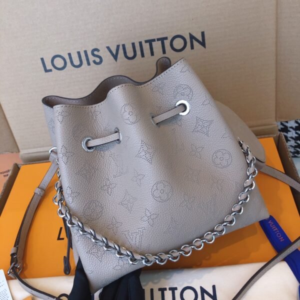 Elevate your everyday style with the exquisite Bella bucket bag, a stunning highlight from the 2020 collection. Beautifully crafted from supple Mahina calf leather, this bag features the iconic Monogram pattern delicately perforated into the material, creating a soft, highly sophisticated look.