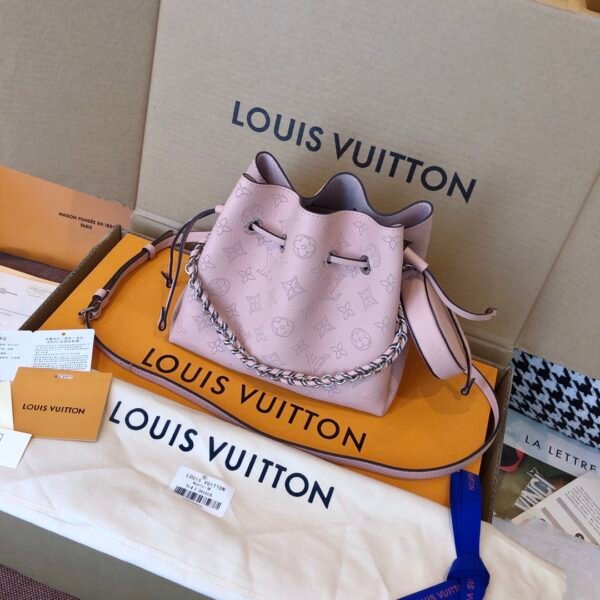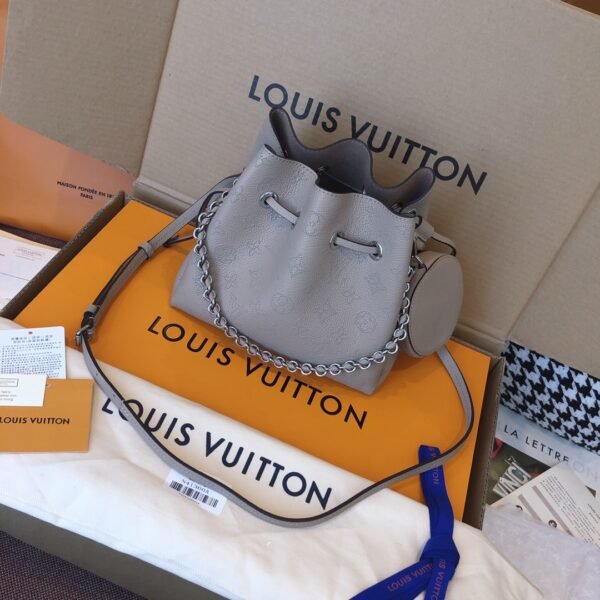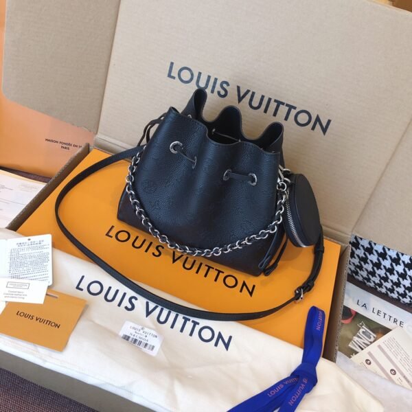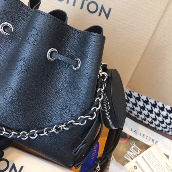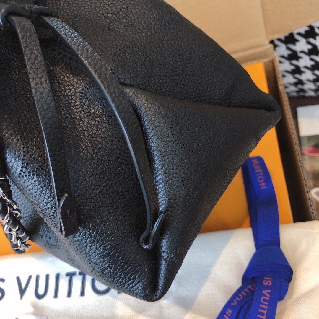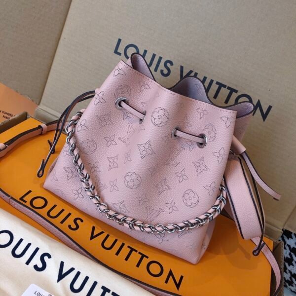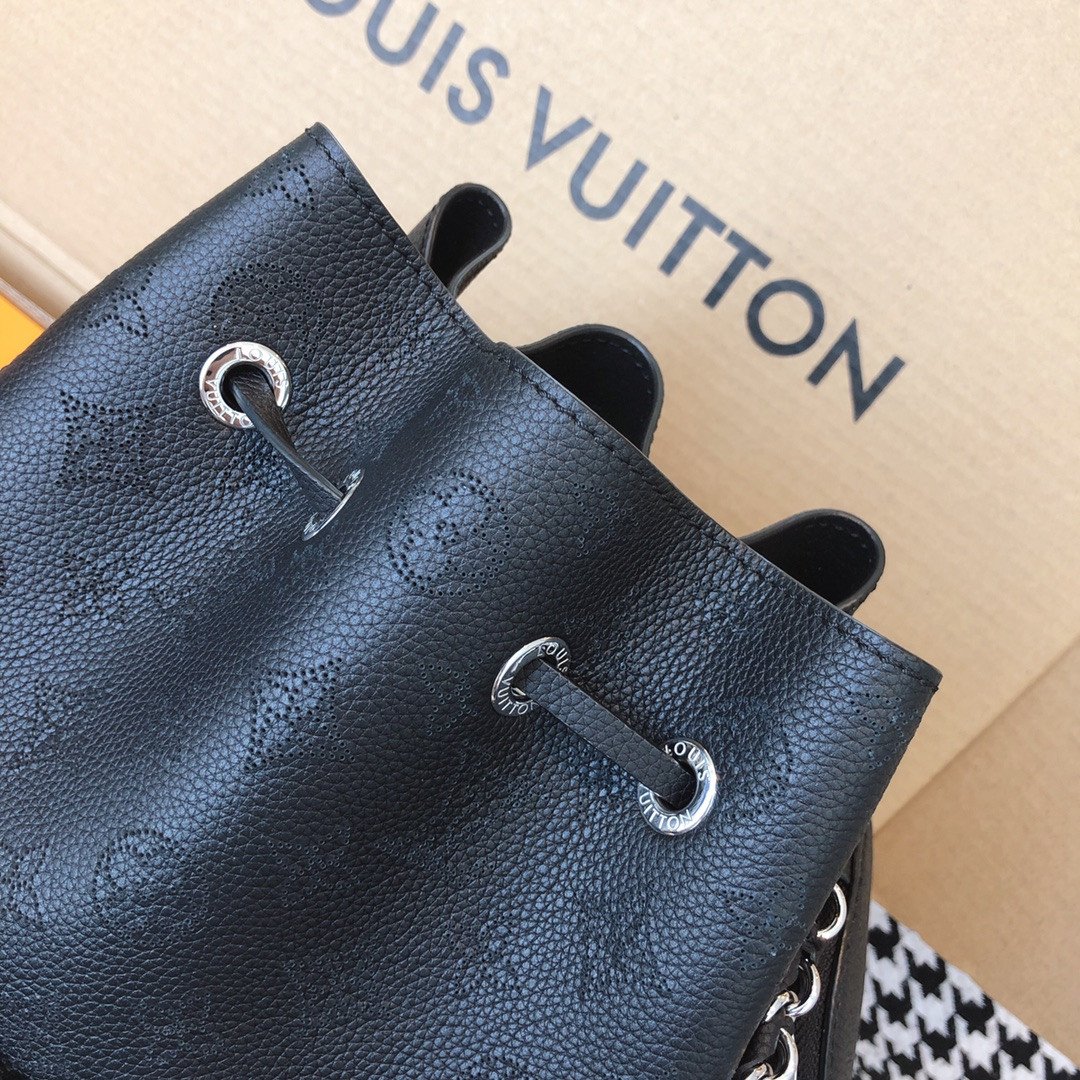 Elevate your everyday style with the exquisite Bella bucket bag, a stunning highlight from the 2020 collection. Beautifully crafted from supple Mahina calf leather, this bag features the iconic Monogram pattern delicately perforated into the material, creating a soft, highly sophisticated look.