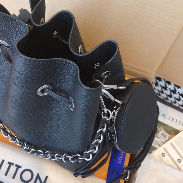 The Bella bucket bag is defined by its elegant, relaxed silhouette and flawless craftsmanship. It features a meticulously finished leather drawstring closure and exquisite edge painting, constructed using premium imported hardware and original-quality wax thread stitching to ensure a boutique-level finish. For added versatility and charm, it comes equipped with a gleaming metallic woven chain, a leather shoulder strap, and an adorable, detachable round coin purse.