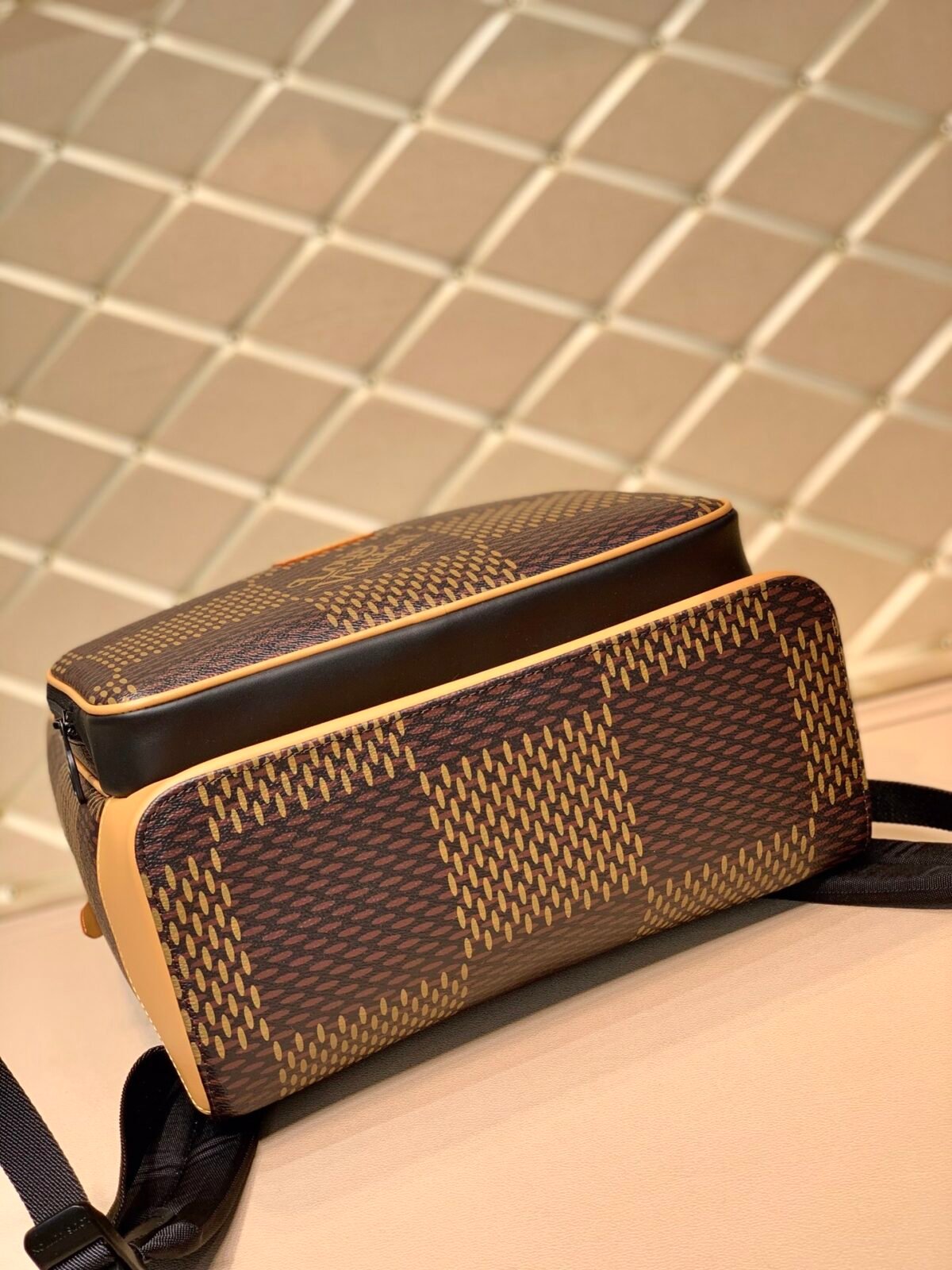 Material: Monogram coated canvas and Giant Damier Ebene coated canvas with cowhide leather trim and textile lining (Note: Corrected from the text’s Damier Infini mention)