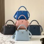 Named after Rue des Capucines in Paris, the location of Louis Vuitton’s very first store, the Louis Vuitton Capucines handbag is a timeless masterpiece that brings an air of profound sophistication and enduring style to any wardrobe. Masterfully crafted from imported, premium full-grain Taurillon cowhide leather featuring a rich and tactile lychee-grain texture, this exquisite piece is the ultimate symbol of modern luxury.