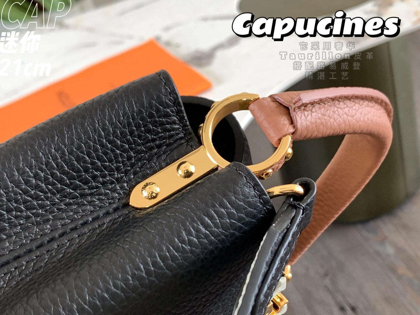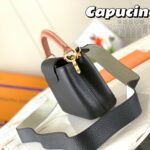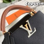 The bag is rich with classic heritage details, prominently highlighted by the signature LV initials, distinctive side rings, and a delicate Monogram flower resting on the unique flap. Designed for ultimate versatility to match your mood or outfit, the Capucines Mini offers a multitude of styling options. It is equipped with a refined top handle for an elegant hand-carry, alongside a detachable leather strap that allows for effortless shoulder or crossbody wear.