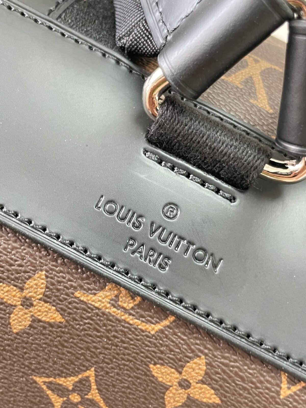 Crafted from the house’s legendary classic Monogram coated canvas, the bag features a secure flap opening, adjustable leather shoulder straps, and two highly convenient side pockets for quick access to your essentials. The generously sized interior offers ample room for work, travel, or daily urban commuting.