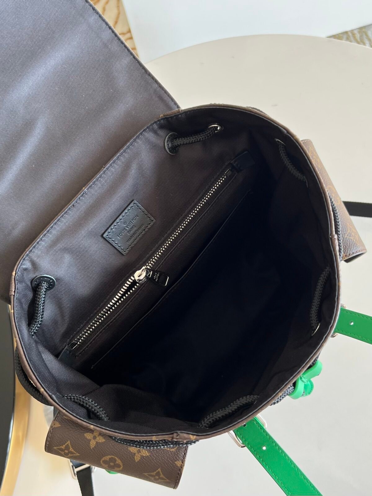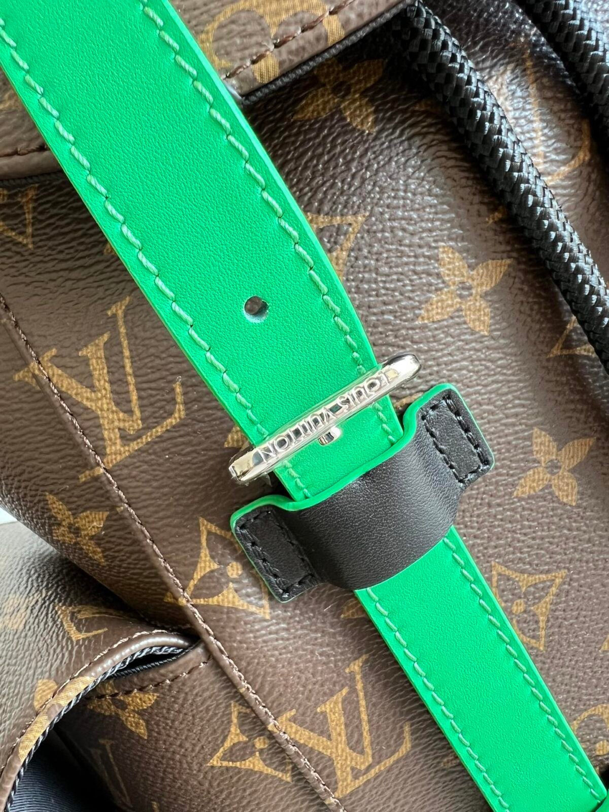 Classic Monogram paired with energetic Green leather trim.