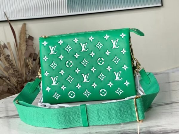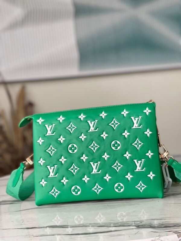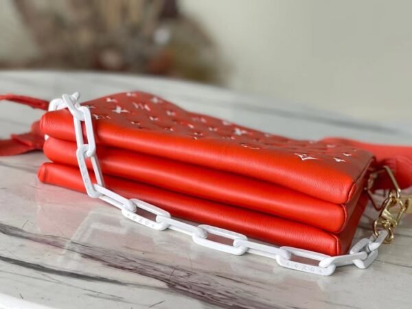 A Bold, Sports-Luxe Statement Elevate your everyday style with this striking edition of the Louis Vuitton Coussin PM. Inspired by the dynamic energy of the tennis court, this bag combines high-fashion luxury with a playful, athletic edge. The contrasting white Monogram motifs stand out against the vivid leather, mirroring the striking crispness of tennis court boundary lines, making it an absolute showstopper for the season.